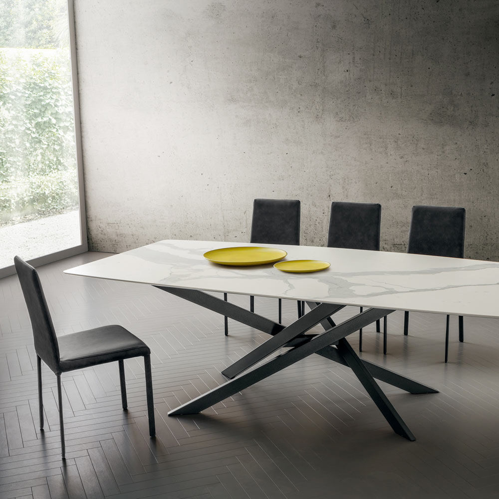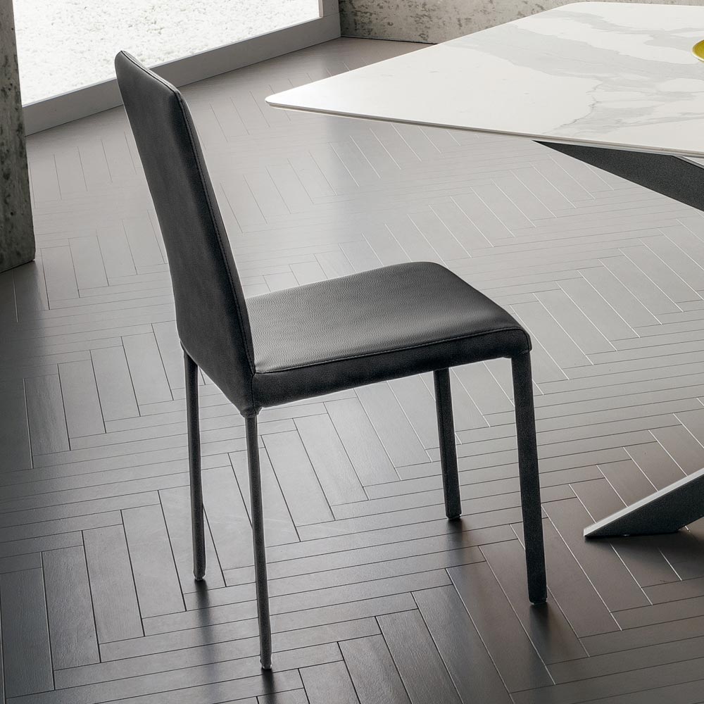 كرسي عصري لغرفة الطعام أو المطبخمع هيكل معدني مغطى بالكامل بجلد صديق للبيئة مع حشوة إسفنجية، صنع في إيطاليا . من استخدام مواد خام عالية الجودةومعالجة 100٪ صنع في إيطاليا، وُلد حل الأثاث هذا بخطوط بسيطة وسرية ، والذي يتكيف تمامًا مع أي سياق منزلي ولا يخلق تناغمًا مثاليًا مع عناصر الأثاث المحيطة. يمثل الكرسي جزءًا أساسيًا من المنزل ومن الضروري أن يلعب دورًا وظيفيًا مع تقديم جمالية أنيقة وحديثة في نفس الوقت. يغطي هذا المكمل كلا الدورين بفضل التصميم بخطوط بسيطة وناعمة ونظيفة والتي تتحد مع الراحة العالية التي يوفرها المقعد المنجد، مما يعطي الحياة لنتيجة عالية الجودة والقيمة القادرة على خلق الجو المثالي في داخل المساحات الحديثة التي تعطي لمسة من الرقي والشخصية .