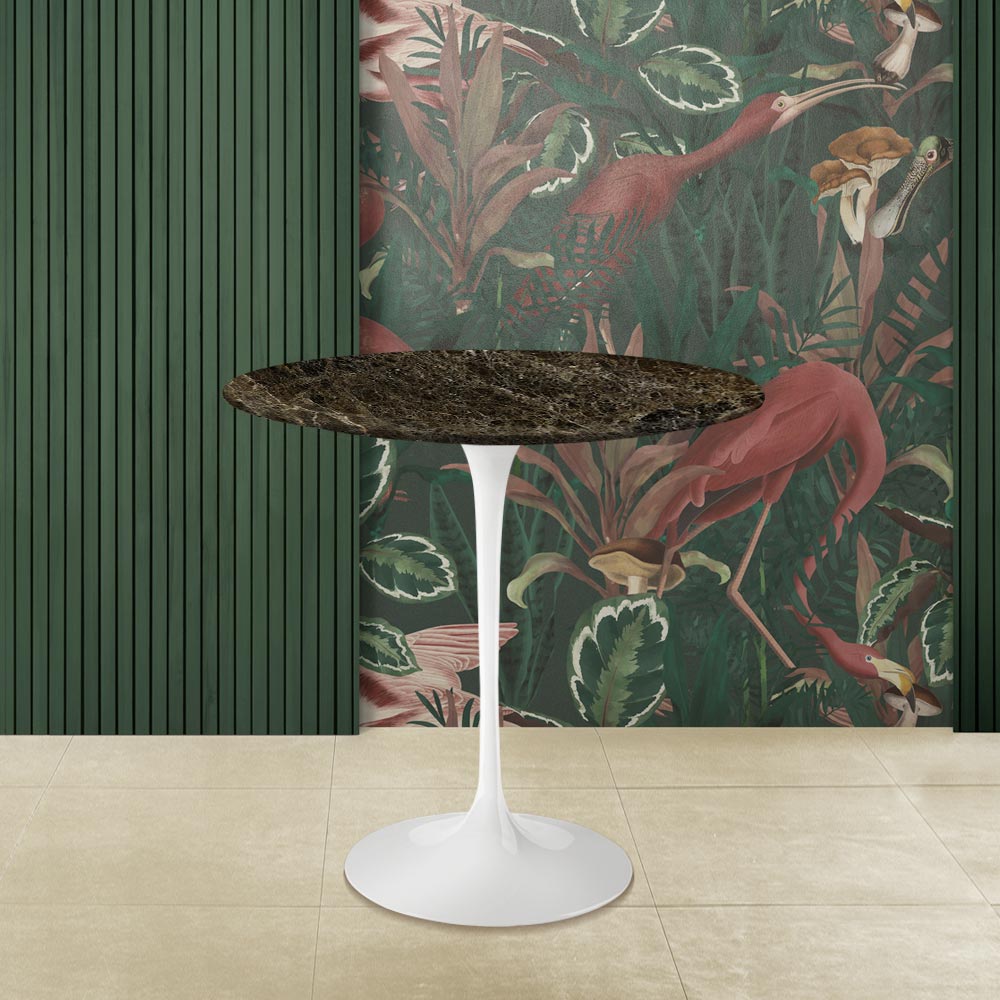 طاولة قهوة بسطح بيضاوي من رخام إمبيرادور داكن وقاعدة من الألومنيوم المصقول، صنع في إيطاليا . يتميز هذا المنتج بميزتين : سطح رخام إمبيرادور داكن وشكله البيضاوي المميز . يُعد رخام إمبيرادور داكن من أجود أنواع الرخام، مما يضمن المتانة والجودة ، ويضفي لمسة أنيقة وراقية على طاولة القهوة. يُستخدم الشكل البيضاوي بشكل متزايد في مختلف أنماط التصميم والأثاث، إذ يضفي على الغرفة لمسةً من الأصالة والنضارة ، ويمثل فكرةً جديدةً ومميزةً تُكمل ديكور أي بيئة معيشة. بفضل لمساته النهائية البسيطة والخطية، يُعد هذا المنتج مثاليًا للاستخدام في أي مناسبة وأي نمط أثاث.