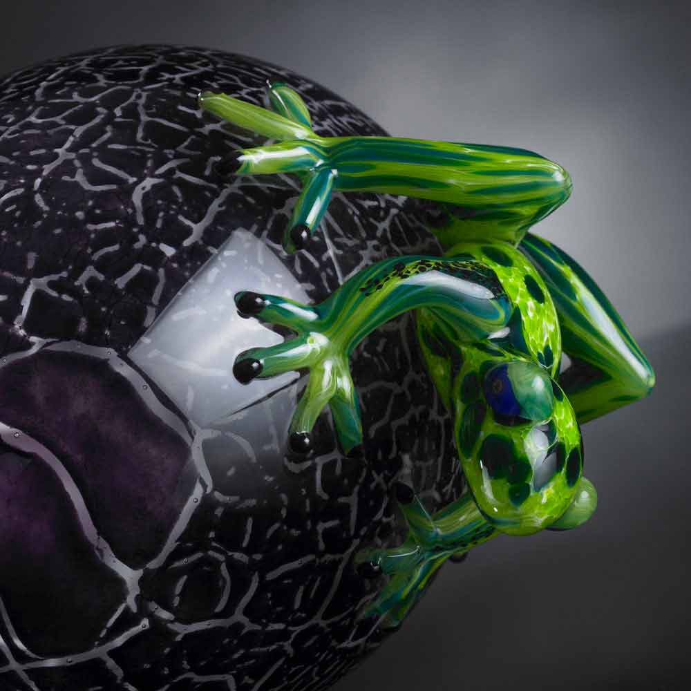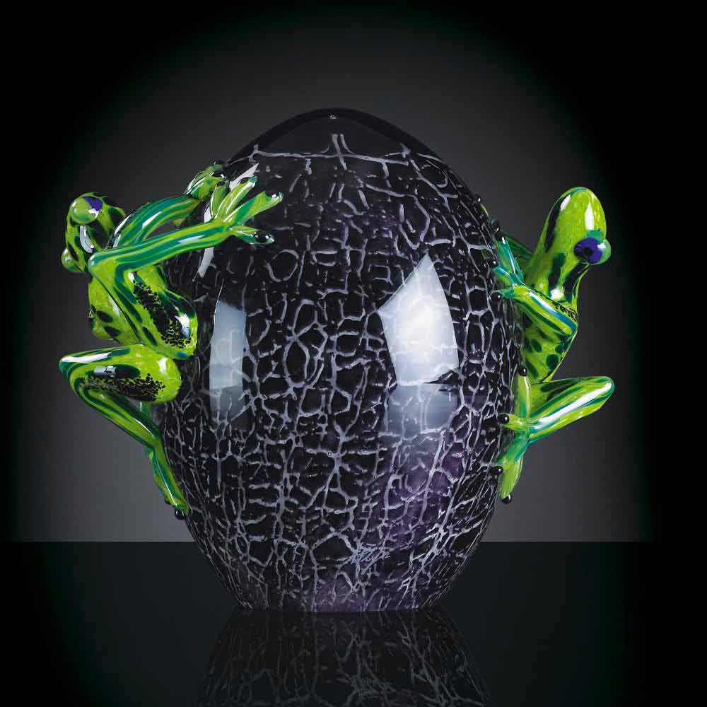 تمثال زخرفي على شكل ضفادع على بيضة من الزجاج الملون صنع في إيطاليا.