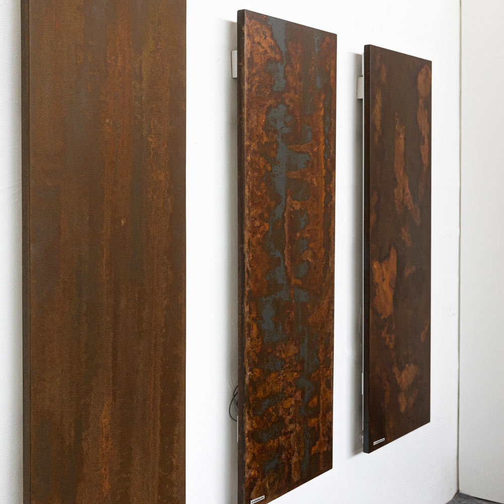 تكمن خصوصية هذا المُشعّ المُصمّم في خلق تأثير كورتن ، الذي يُطلق اللون البني الصدئ المُميّز، ويجعل كل مُنتج فريدًا لا يُضاهى. تتم معالجة هذا التأثير المُحدّد من خلال خطوات مُحدّدة تتطلّب تفانيًا ووقتًا طويلًا لتحقيق التفاعلات المُناسبة.