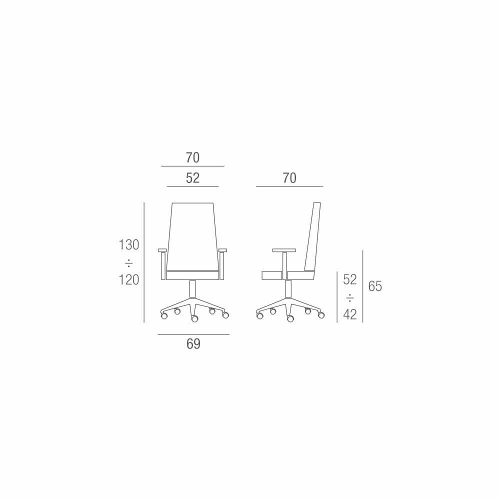 مزينة بمساند ذراع رائعة مع هيكل داعم من الفولاذ المطلي بمساحيق الإيبوكسي باللون الأسود، ومبطنة برغوة البولي يوريثان المقطوعة من كتلة، بكثافة 50 كجم / م 3، ومغطاة. القاعدة ذات الخمس نجوم مصنوعة من الألومنيوم المصبوب المصقول، ومكتملة بعجلات من النايلون مقاس 50 مم. كما أن جيما قابلة للإزالة بالكامل.
