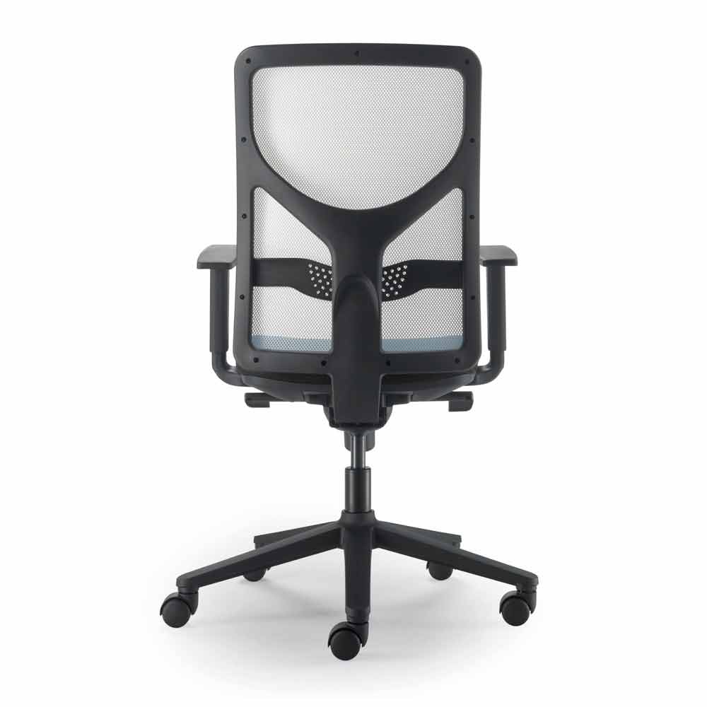 مكون من إطار داعم للظهر من النايلون PA6 المحمل بنسبة 30% بالألياف الزجاجية مع إطار للحشو من PS باللون الأسود. ظهر ثابت مع دعم قطني قابل للتعديل في الارتفاع 100 مم. إمالة مسند الظهر 22 درجة.