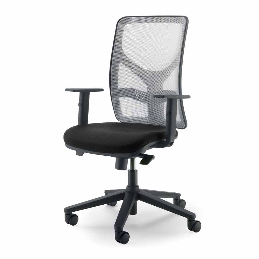 مساند أذرع قابلة لتعديل الارتفاع بواسطة زر تشغيل، شوط 70 مم، مصنوعة من النايلون PA6، مشحونة بنسبة 15% بألياف زجاجية، لون أسود. مجهزة بآلية مسند ظهر / مقعد فولاذية متزامنة ذات ذراعين، مع 4 أوضاع قفل، وضبط شد الزنبرك لضبط التأرجح بواسطة مقبض ونظام أمان مسند الظهر المضاد للصدمات.