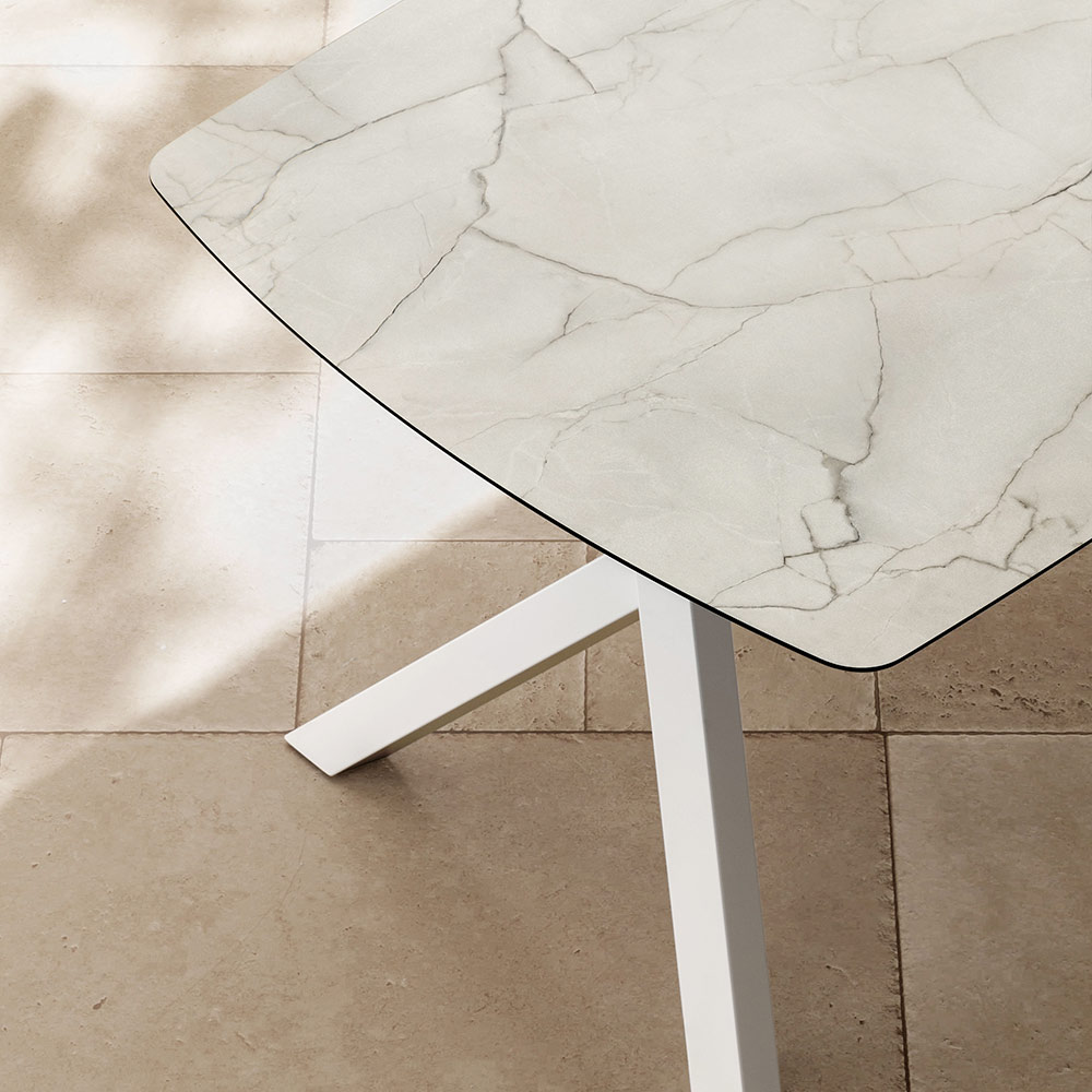 يمنح الهيكل المعدني المطلي ، ذو الأرجل المتقاطعة ذات التأثير البصري القوي، الثبات والمتانة والأسلوب المعماري ، مما يجعل هذه الطاولة مثالية للبيئات الحديثة والأنيقة والمساحات المفتوحة .