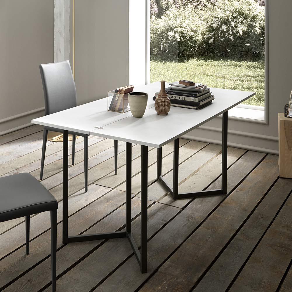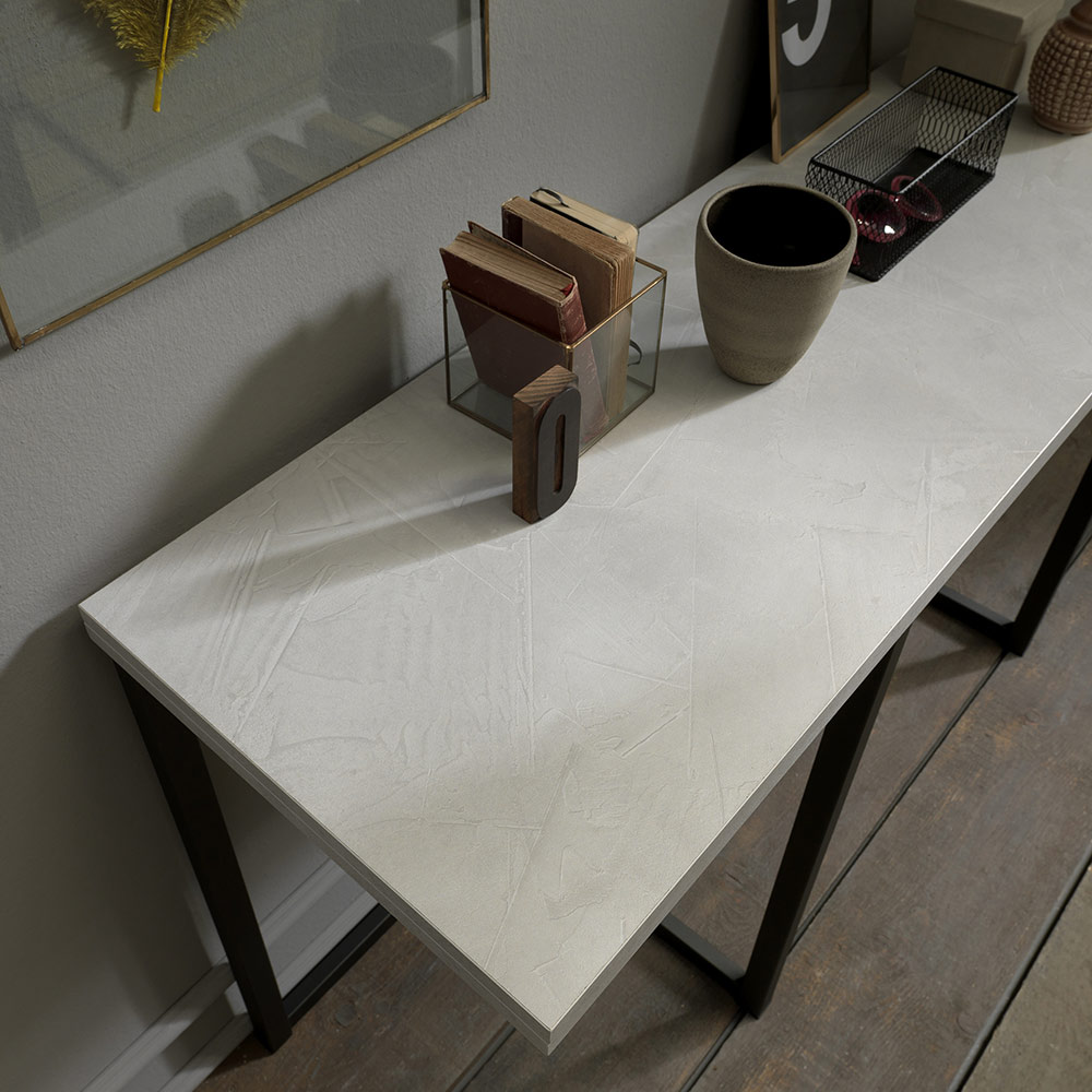 هذه الكونسول القابلة للتمديد المصنوعة في إيطاليا، لها هيكل من المعدن المنقوش المطلي بالجرافيت وجزء علوي من الميلامين قابل للتمديد مع آلية طي تسمح لك بتحويل الكونسول إلى طاولة طعام مريحة وعملية مع التوفيق بين الوظيفة والتصميم للحصول على نتيجة حصرية وجماليات راقية .