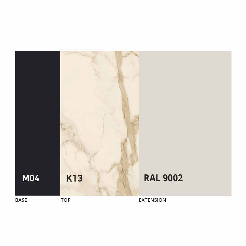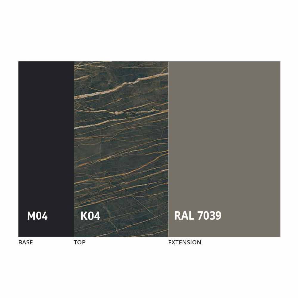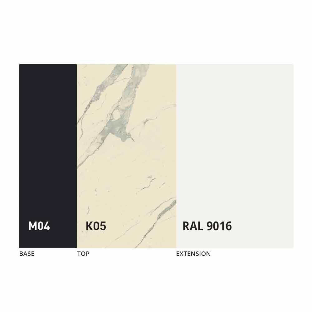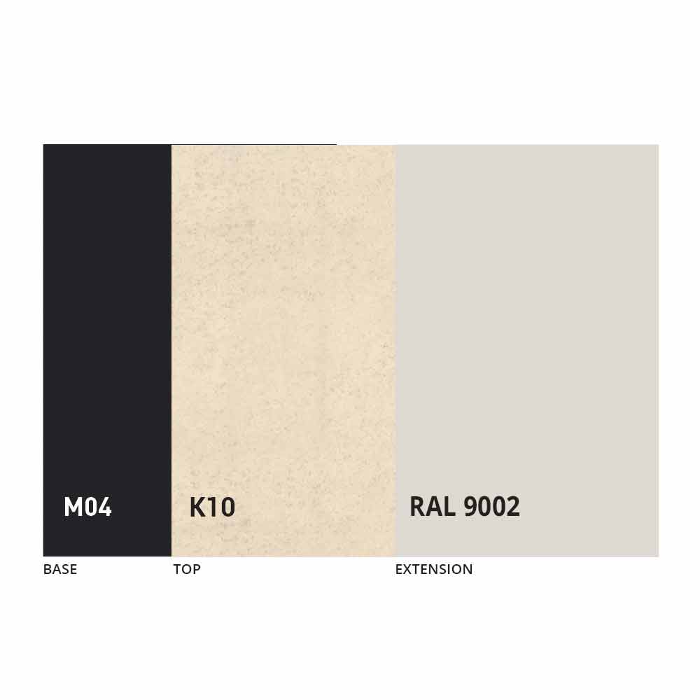 يمكن تخصيص سطح وقاعدة الطاولة بمواد وتشطيبات نموذجية مختلفة أو طلاء RAL. للاستفسار، تواصل معنا باستخدام نموذج "