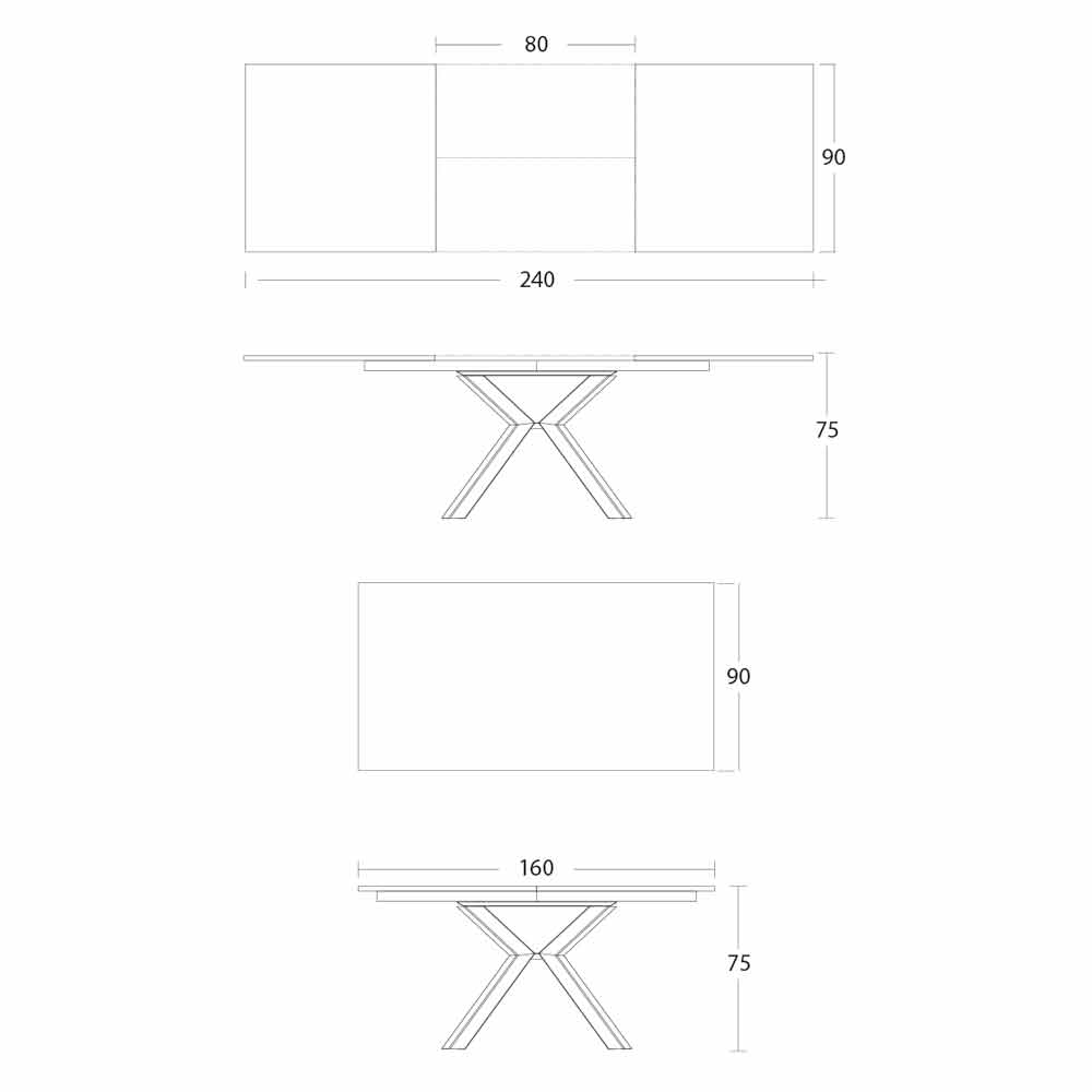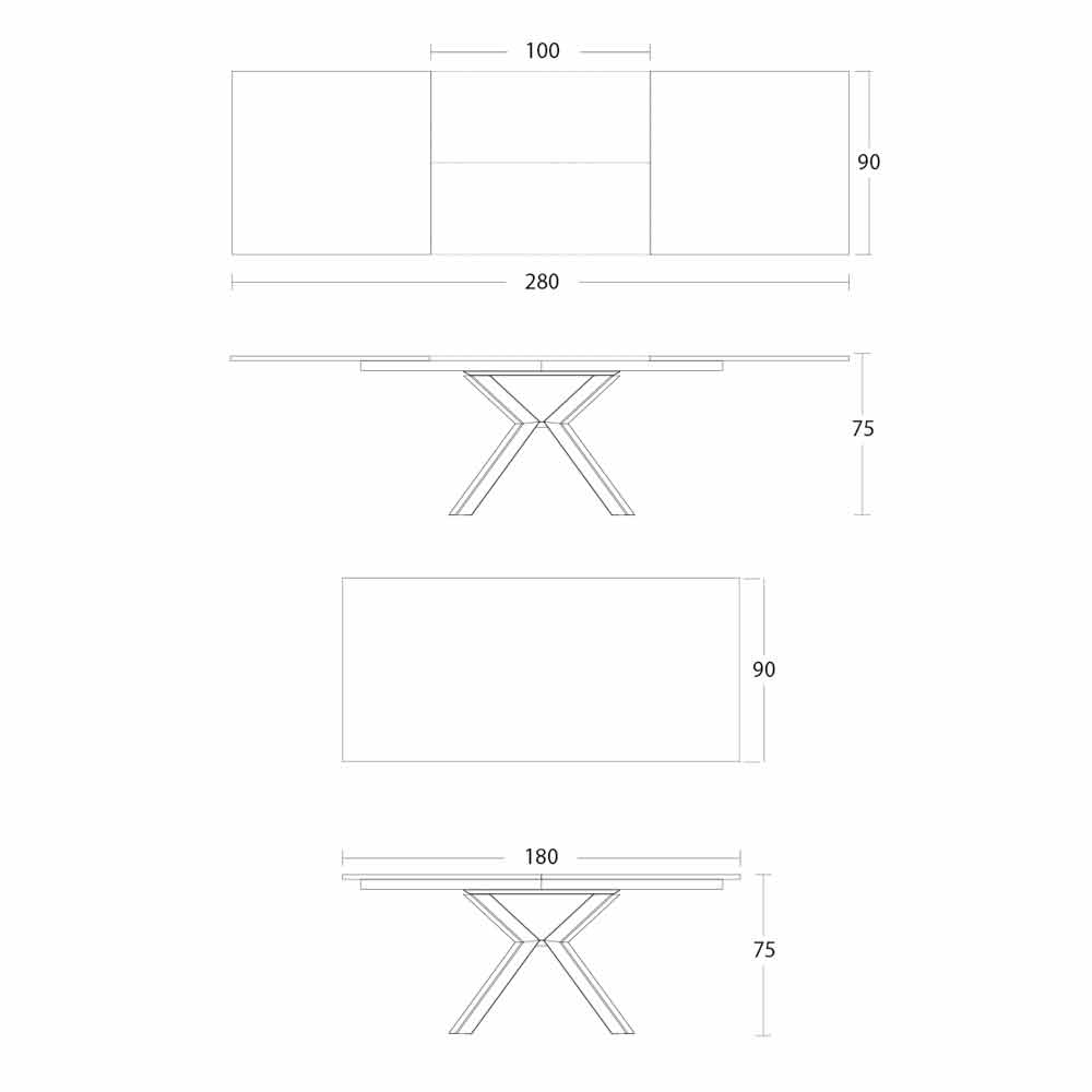 - العرض 180-280 × العرض 90 × الارتفاع 75 سم