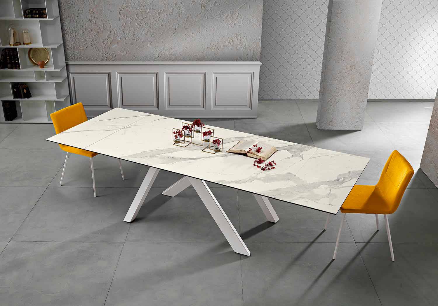 ويلمر هي طاولة قابلة للتمديد مصنوعة في إيطاليا بقاعدة معدنية مطلية وسطح يتضمن امتدادات زجاجية سيراميكية . متوفر في إصدارات مختلفة من التشطيبات: قاعدة :