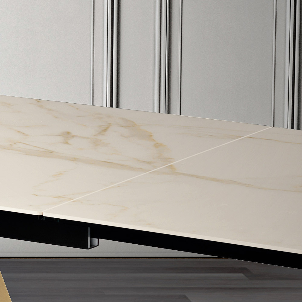 هذا الإبداع ليس مجرد طاولة قابلة للتمديد ، بل هو تحفة فنية تُضفي رونقًا خاصًا على أي مكان بفضل حضورها البانورامي. سطحها يُجسّد الفخامة والطبيعة، ليُحوّل كل وجبة إلى حدثٍ لا يُنسى.