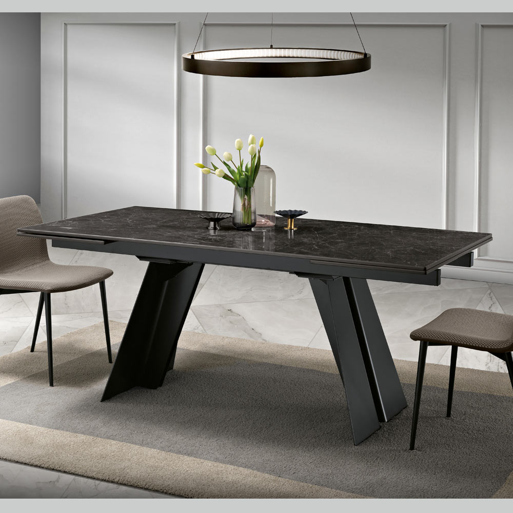مثالية لأولئك الذين يسعون إلى تحقيق التوازن بين الأناقة والعملية، هذه الطاولة القابلة للتمديد تتكيف بسهولة مع المساحات الحميمة وغرف الطعام الكبيرة.