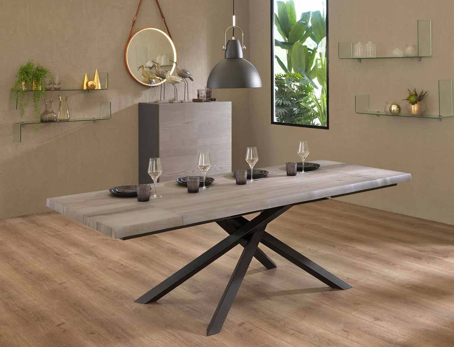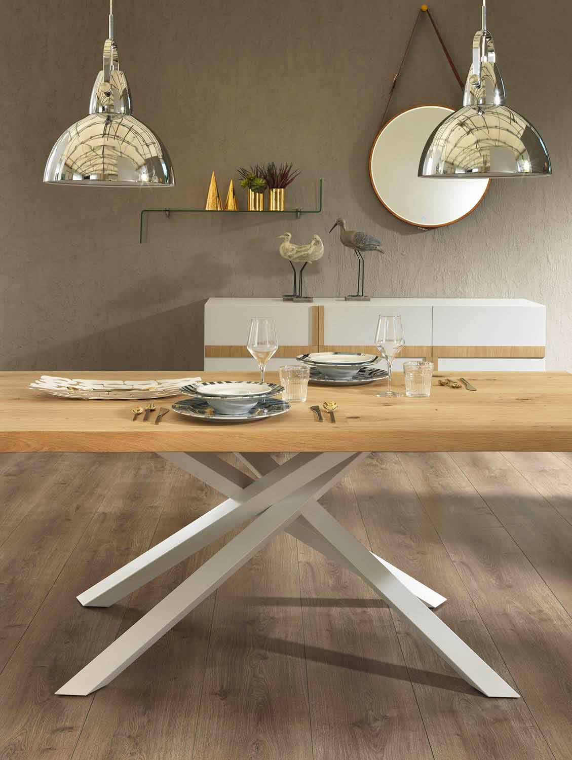 تم تصنيع Xino بقاعدة معدنية مطلية متوفرة بلونين وسطح خشبي متوفر أيضًا بلمستين مختلفتين ويتميز أيضًا بإمكانية تمديده حتى 240 أو 300 سم بفضل الامتدادات الخارجية أيضًا في قشرة خشب الدردار الرمادي، وبالتالي الحصول على مساحة أكبر والسماح لك باستضافة الأصدقاء والأقارب دون الحاجة إلى التخلي عن الراحة.