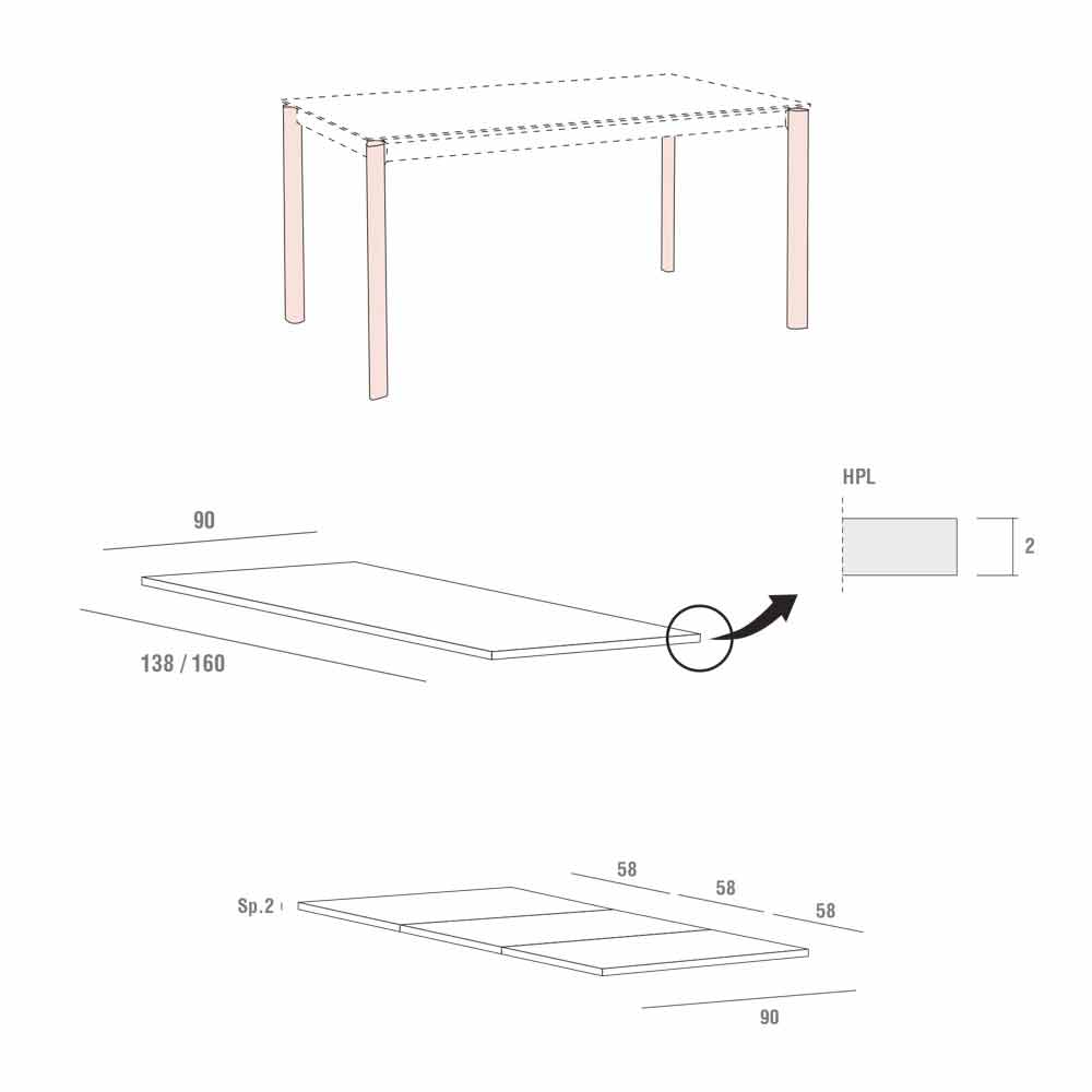 تتميز هذه الطاولة بسطحها العملي القابل للتمديد ، والذي يصل طوله إلى 334 سم، مما يجعلها الخيار الأمثل لمن يحبون تنظيم وجبات الغداء والعشاء مع الأصدقاء، ويبحثون عن حل عملي وعصري في آن واحد، قادر على خلق تناغم رائع مع الأثاث المحيط. ويبرز جمالها الأخّاذ سطحها المصنوع من ألواح عالية الكثافة (hpl)،صفائح مكونة من صفائح رقيقة مشبعة براتنجات حرارية ومضغوطة معًا باستخدام الحرارة والضغط العالي مما يسمح بالحصول على نتيجة عالية الجودةومقاومة بشكل خاص للعوامل الكيميائية والتآكل والخدوش .