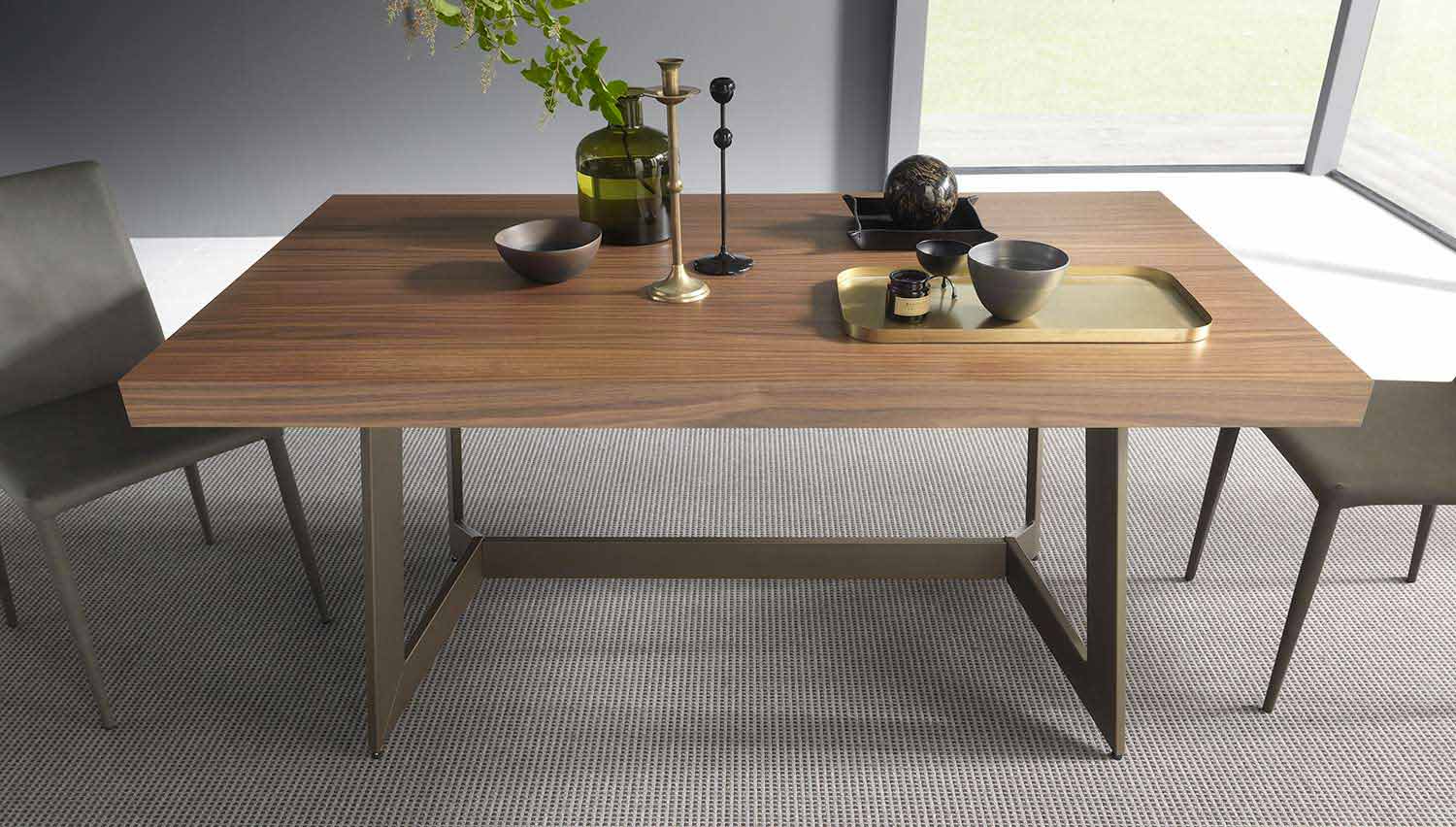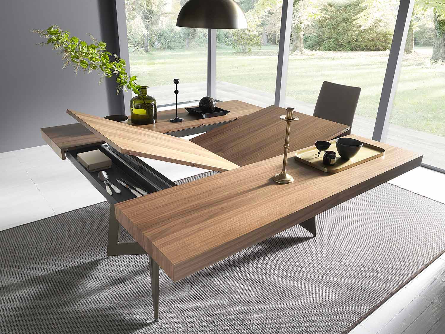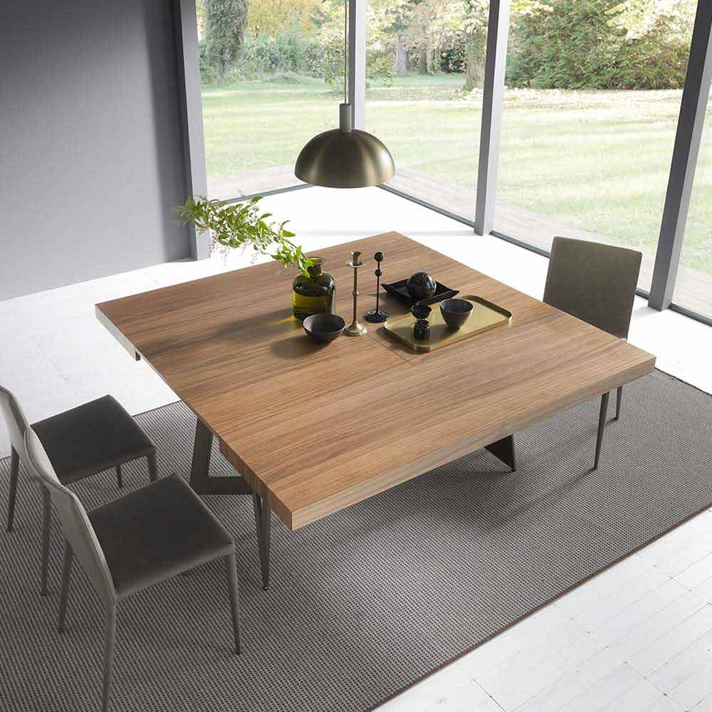 طاولة طعام قابلة للتمديد مع سطح خشبي وهيكل معدني صنع في إيطاليا.