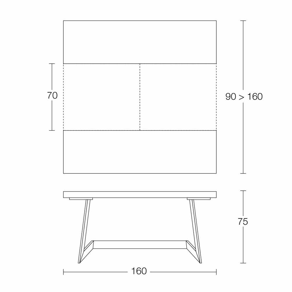 العرض 160 × العمق 90 (160) × الارتفاع 75 سم