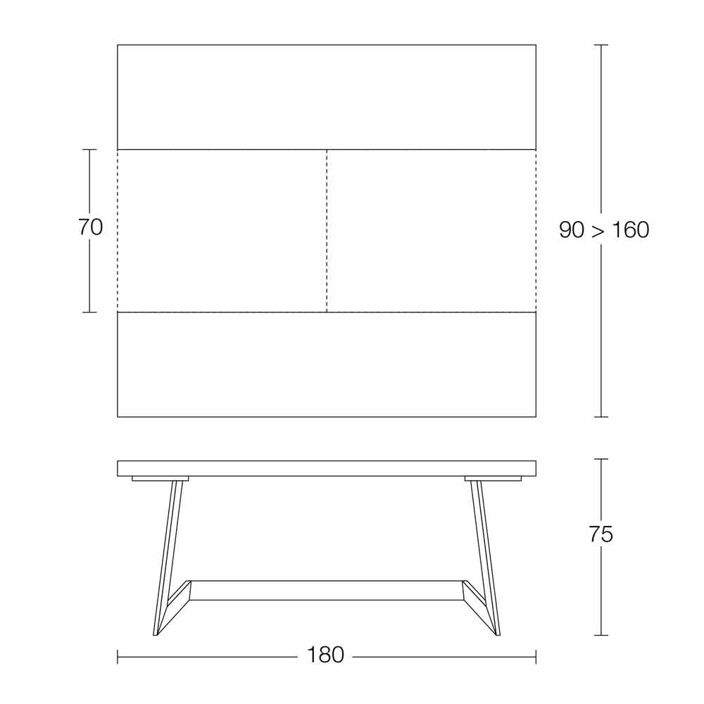 العرض 180 × العمق 90 (160) × الارتفاع 75 سم