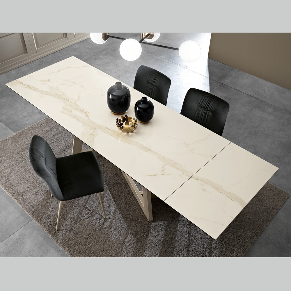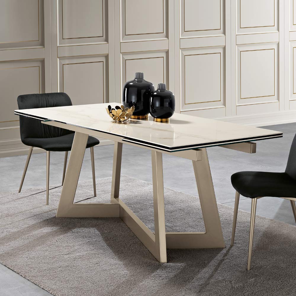 تتميز هذه الطاولة القابلة للتمديد بتصميمها الذكي وتعبيرها المتطور، وهي تشكل اللقاء المثالي بين الوظائف الحديثة والأناقة الخالدة.