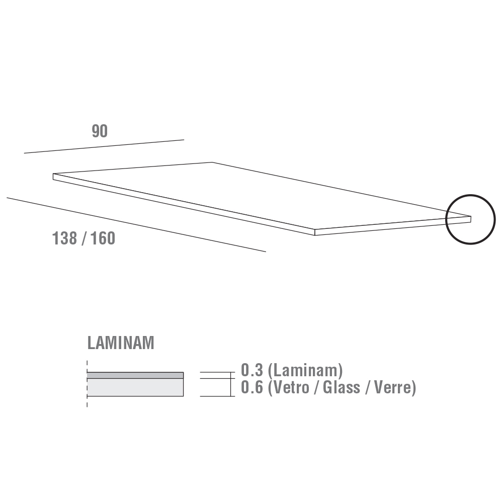 الطول 160/200/240 × العمق 90 × الارتفاع 76 سم.