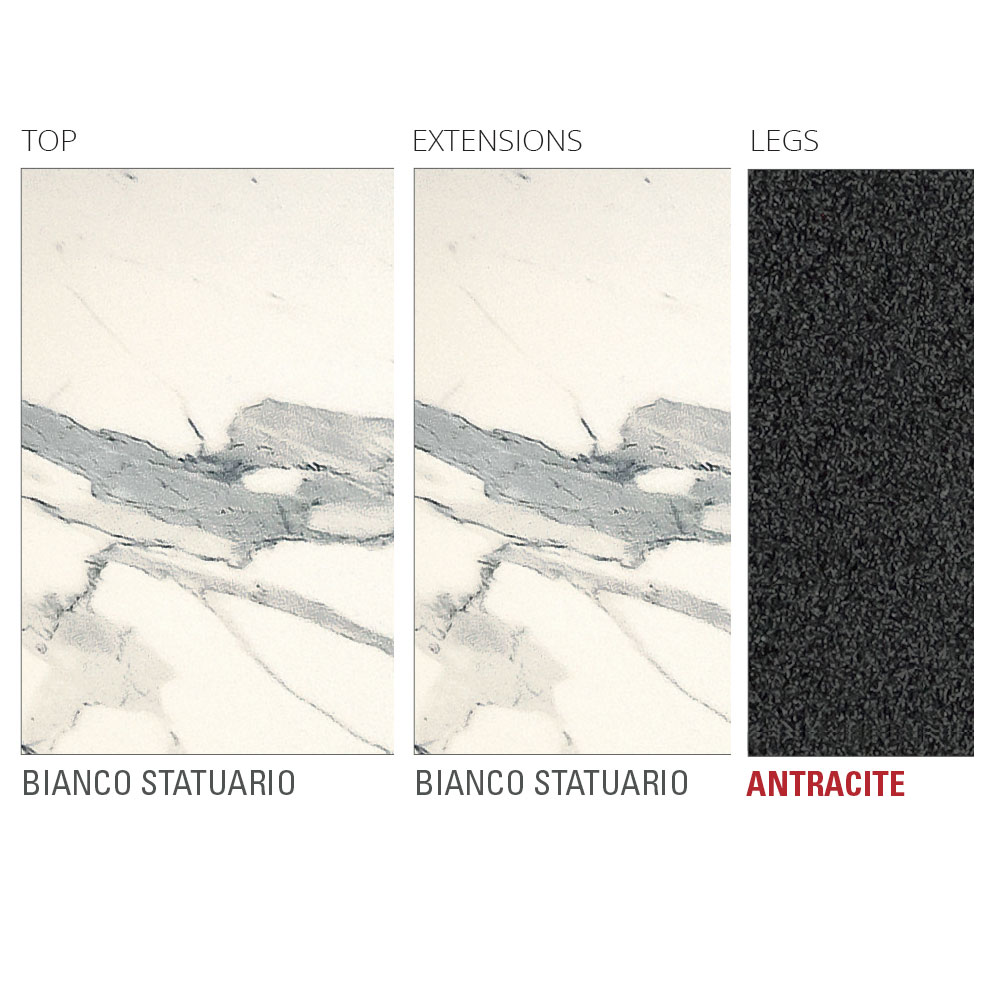 ملاحظة : سطح الطاولة وقاعدتها متوفران بمجموعة واسعة من التشطيبات. استمرارية العروق بين السطح والامتداد غير مضمونة. اتصل بنا للحصول على مزيد من المعلومات أو للحصول على عرض أسعار باستخدام نموذج " طلب المعلومات " المناسب.