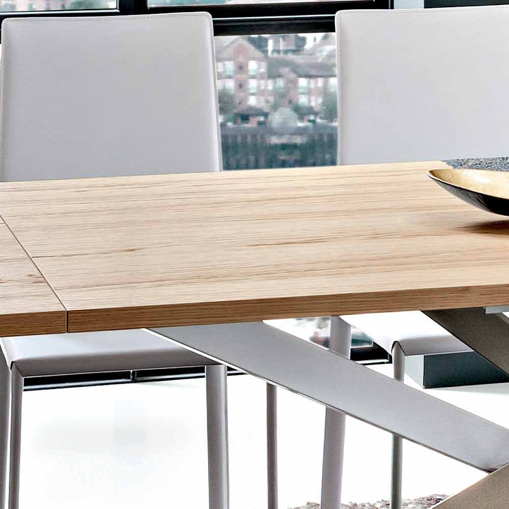 طاولة مطبخ قابلة للتمديد مع سطح من خشب البلوط وأرجل معدنية صنع في إيطاليا.