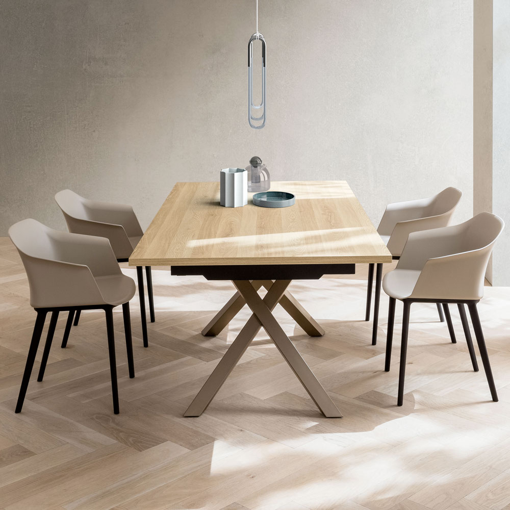 متينة وأنيقة وعملية بشكل لا يصدق: تم تصميم هذه الطاولة القابلة للتمديد المصنوعة من HPL والمعادن لأولئك الذين يبحثون عن الوظيفة والأسلوب المعاصر في قطعة أثاث واحدة.