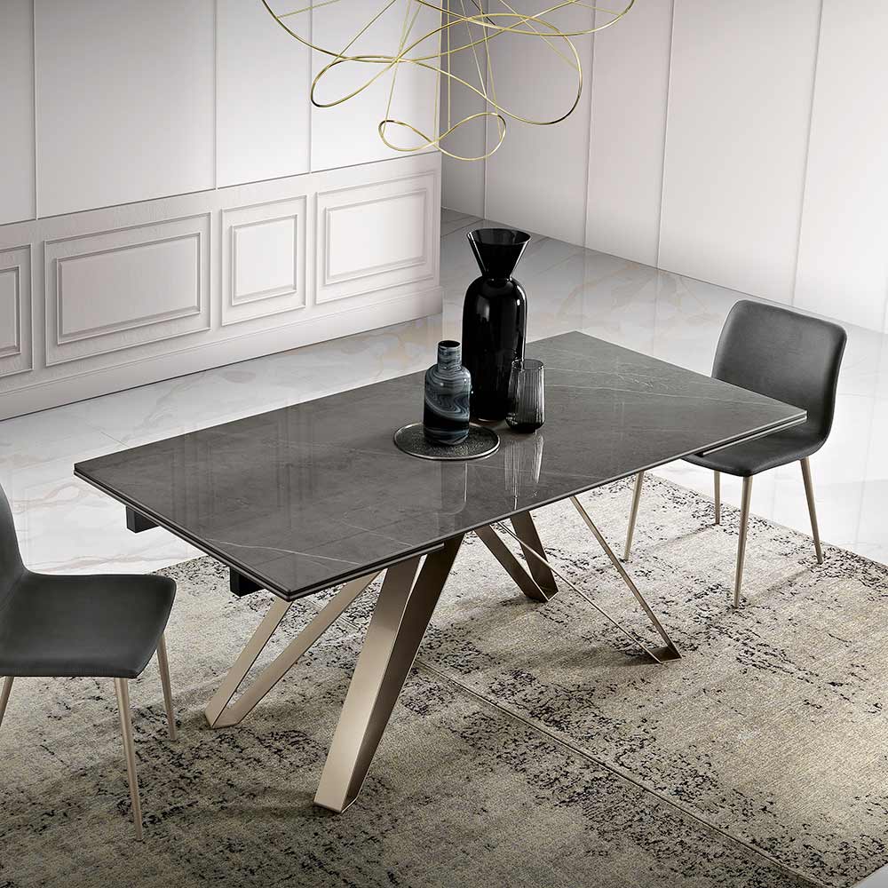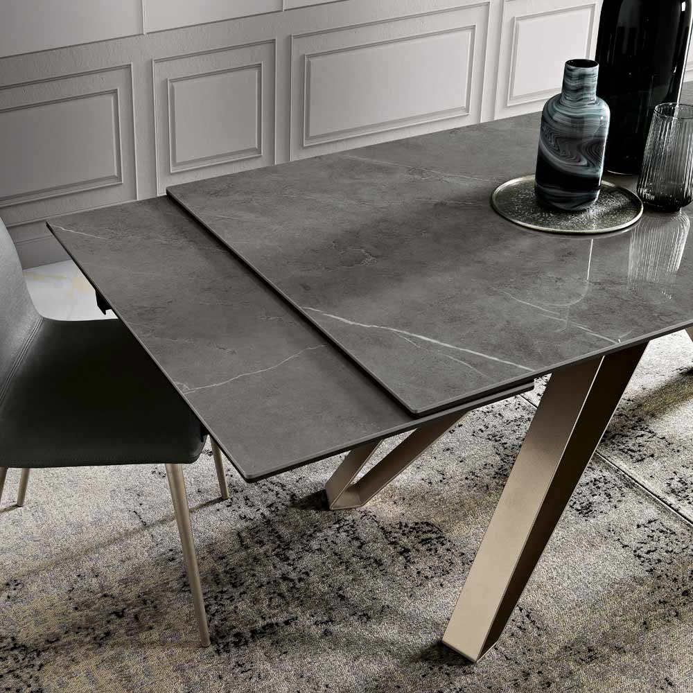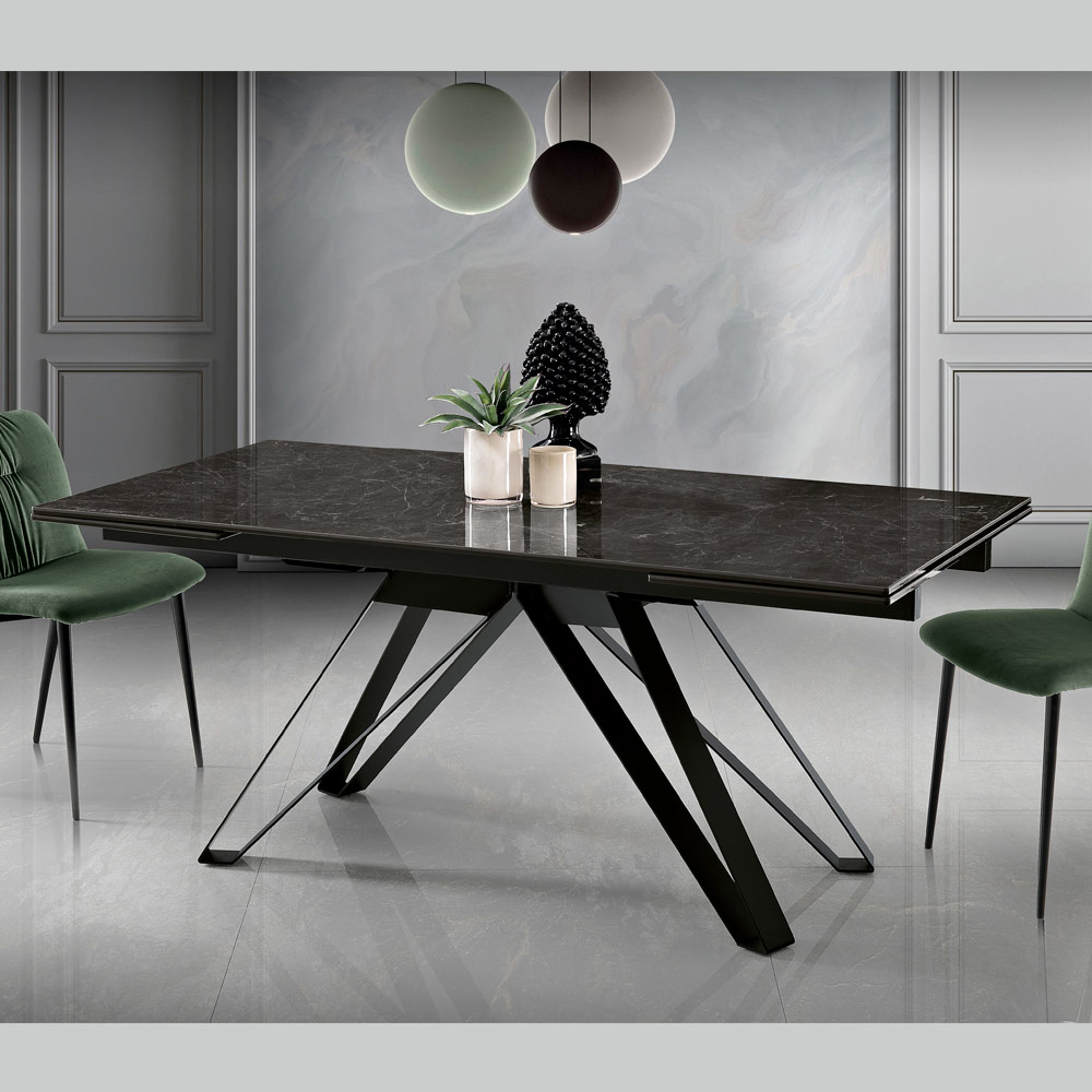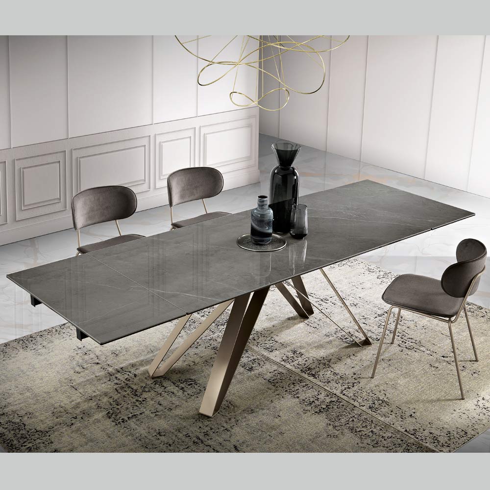هذه الطاولة القابلة للتمديد ، المُحاطة بمجموعة ألوان راقية، تُجسّد الأناقة العصرية. سطحها الزجاجي الخزفي يُضفي لمسة جمالية ساحرة، كلوحة طبيعية تُرسم عليها عروق تُضفي عمقًا وحركة على سطحها.