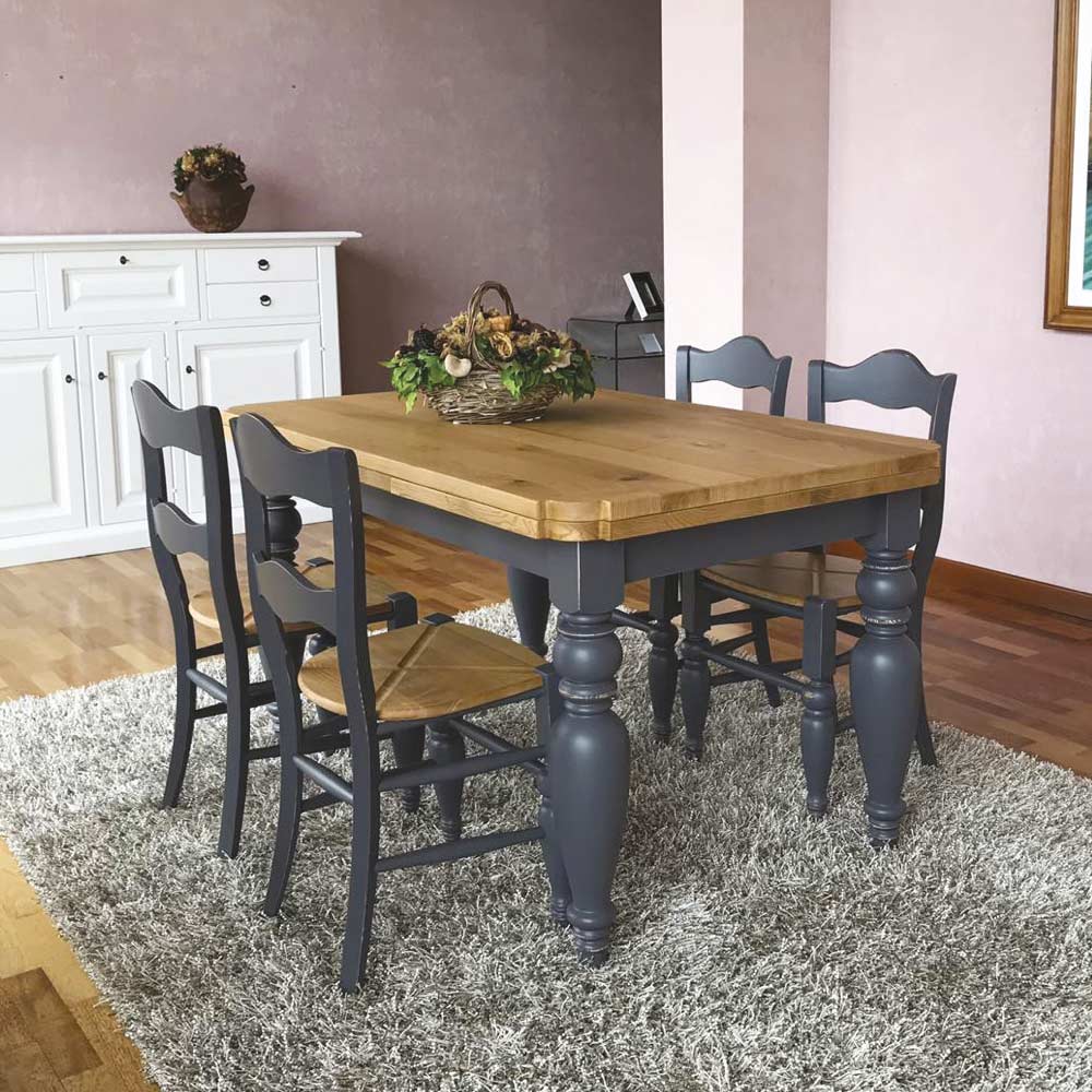 طاولة داخلية قابلة للتمديد مصنوعة من خشب البلوط الصلب المعقود أو خشب الدردار المصقولبزوايا مُشكَّلة . أرجلها مصنوعة من الخشب الصلب ومتصلة ببعضها البعض بشريط من الخشب الصلب. صُنع المنتج بالكامل في توسكانا باستخدام مواد عالية الجودة ، ويأتي مع امتدادين بطول 50 سم لكل منهما، مما يجعله متعدد الاستخدامات .