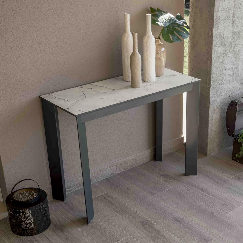 هذه الكونسول القابلة للتمديد هي الخيار الأمثل لمن يرغبون في الجمع بين العملية والأناقة في حديقتهم أو تراسهم. مصنوعة من مواد عالية الجودة، تتميز بسطح من ألواح HPL ، مما يمنحها مظهرًا أنيقًا ومقاومًا للعوامل الجوية، مما يضمن متانتها مع مرور الوقت.