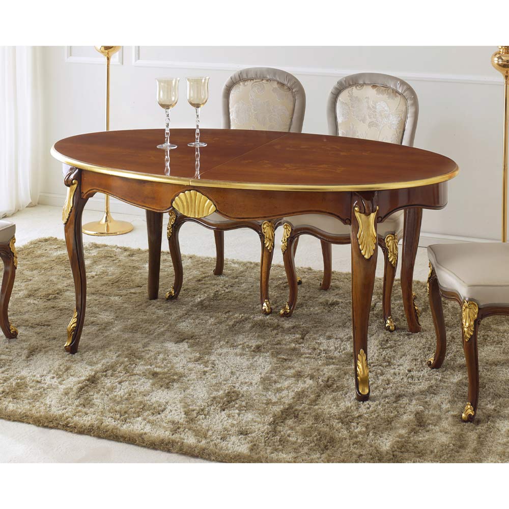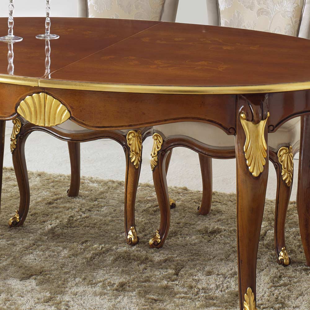طاولة طعام بيضاوية الشكل بسطح قابل للتمديد بفضل امتدادين داخليين بطول 50 سم، مصنوعة بالكامل من الخشب، ومتوفرة بتشطيبات من خشب الجوز باسانو والذهبي العتيق أو الخشب الأبيض والذهبي. قطعة فريدة وراقية، مصنوعة بالكامل في إيطالياعلى يد حرفيين ماهرين، خبراء في الفن، يُكملون كل قطعة ببراعة وذوق رفيع. يُصنع المنتج باستخدام أجود الخامات، ويُنجز يدويًابأقصىدرجاتالعنايةوالاحترافية التي تميز المنتجات المصنوعة في إيطاليا .