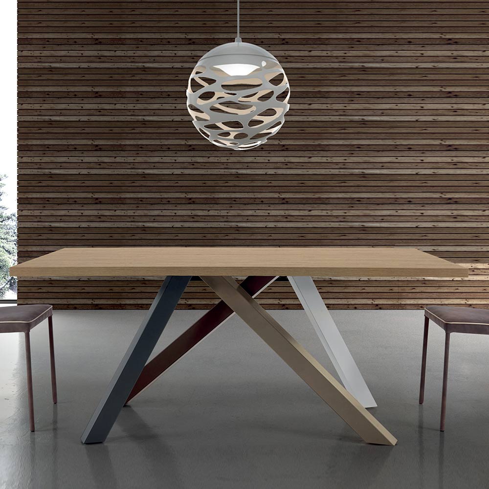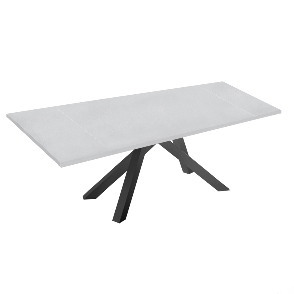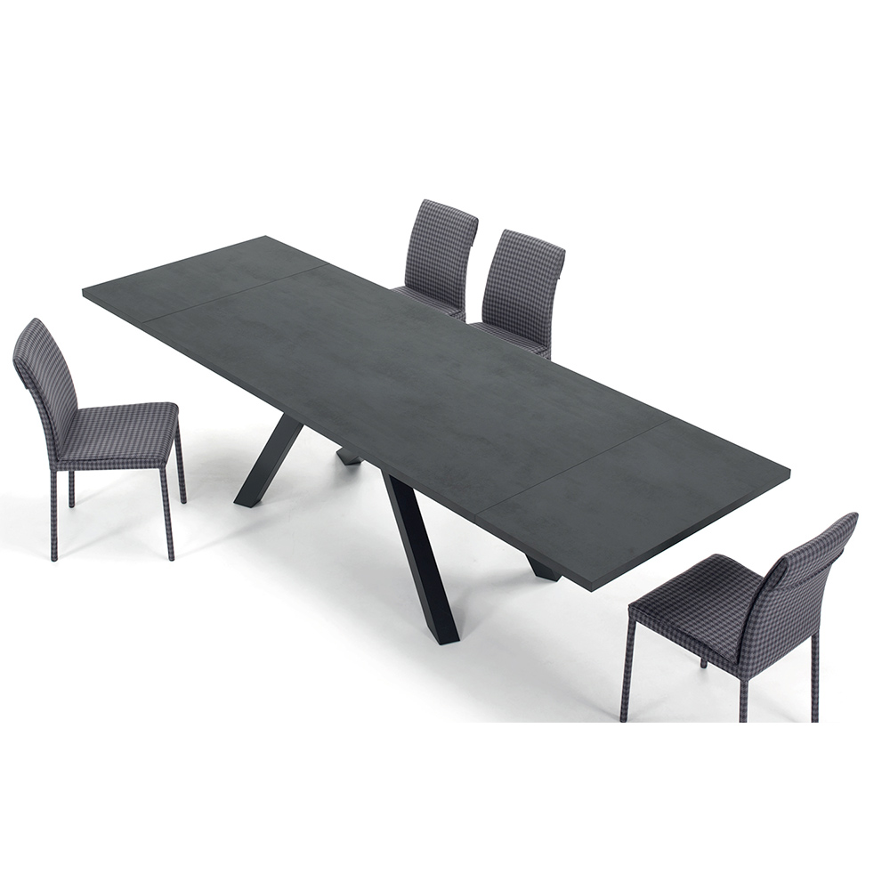 طاولة طعام قابلة للتمديد حتى 300 سم مع سطح من الخشب الرقائقي وقاعدة فولاذية مصنوعة في إيطاليا.