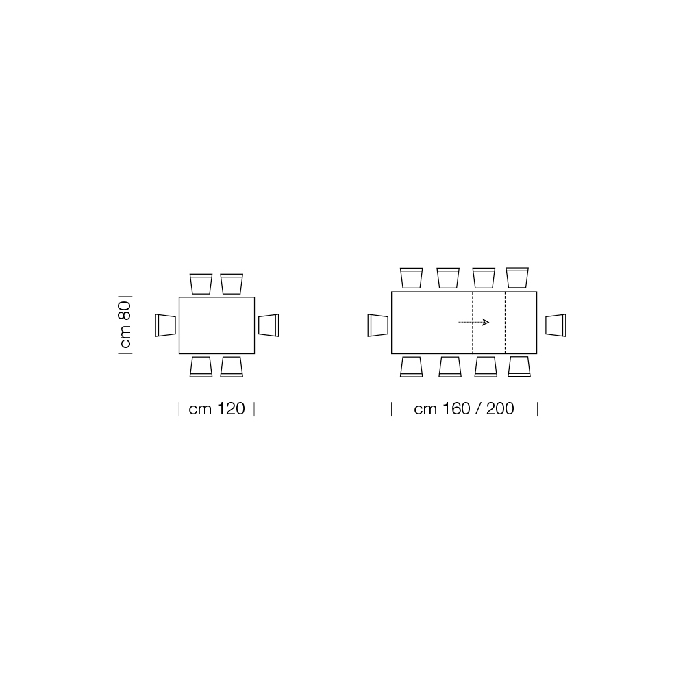 طول 120 (160) × عمق 80 × ارتفاع 75 سم، 8 مقاعد قابلة للتمديد مع امتداد داخلي 40 سم؛