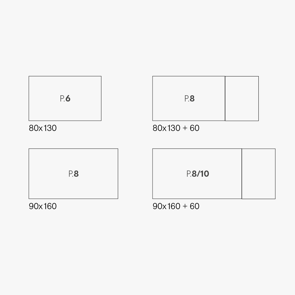• الطول 160/220 سم × العمق 90 سم × الارتفاع 76.5 سم - امتداد واحد 60 سم