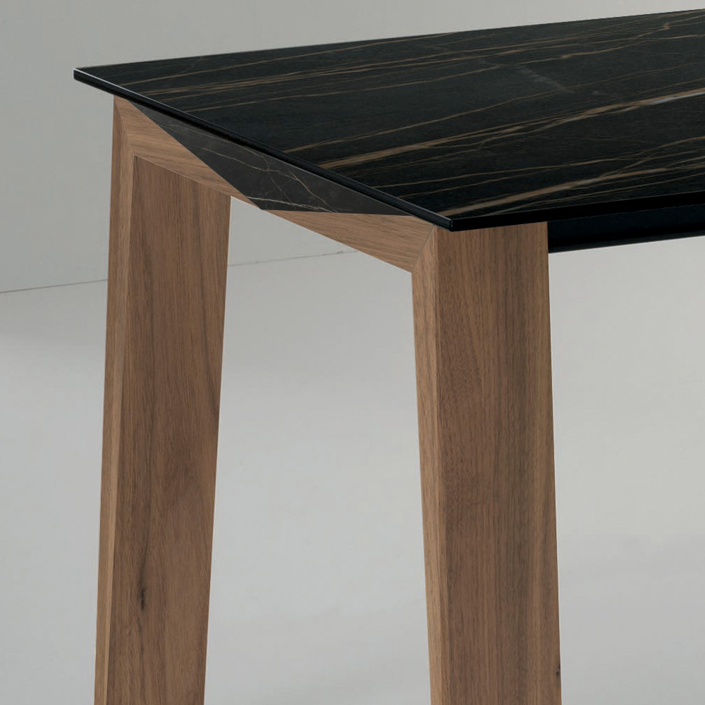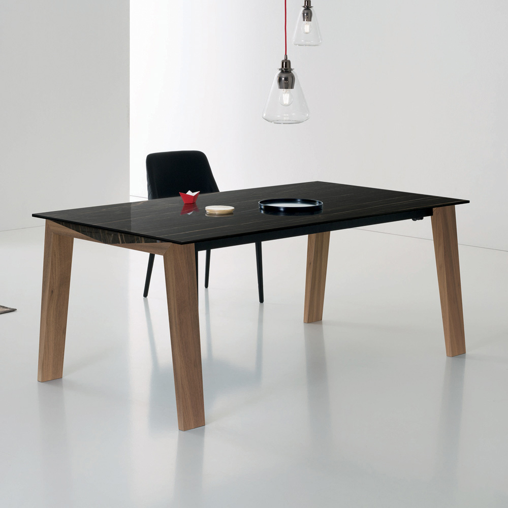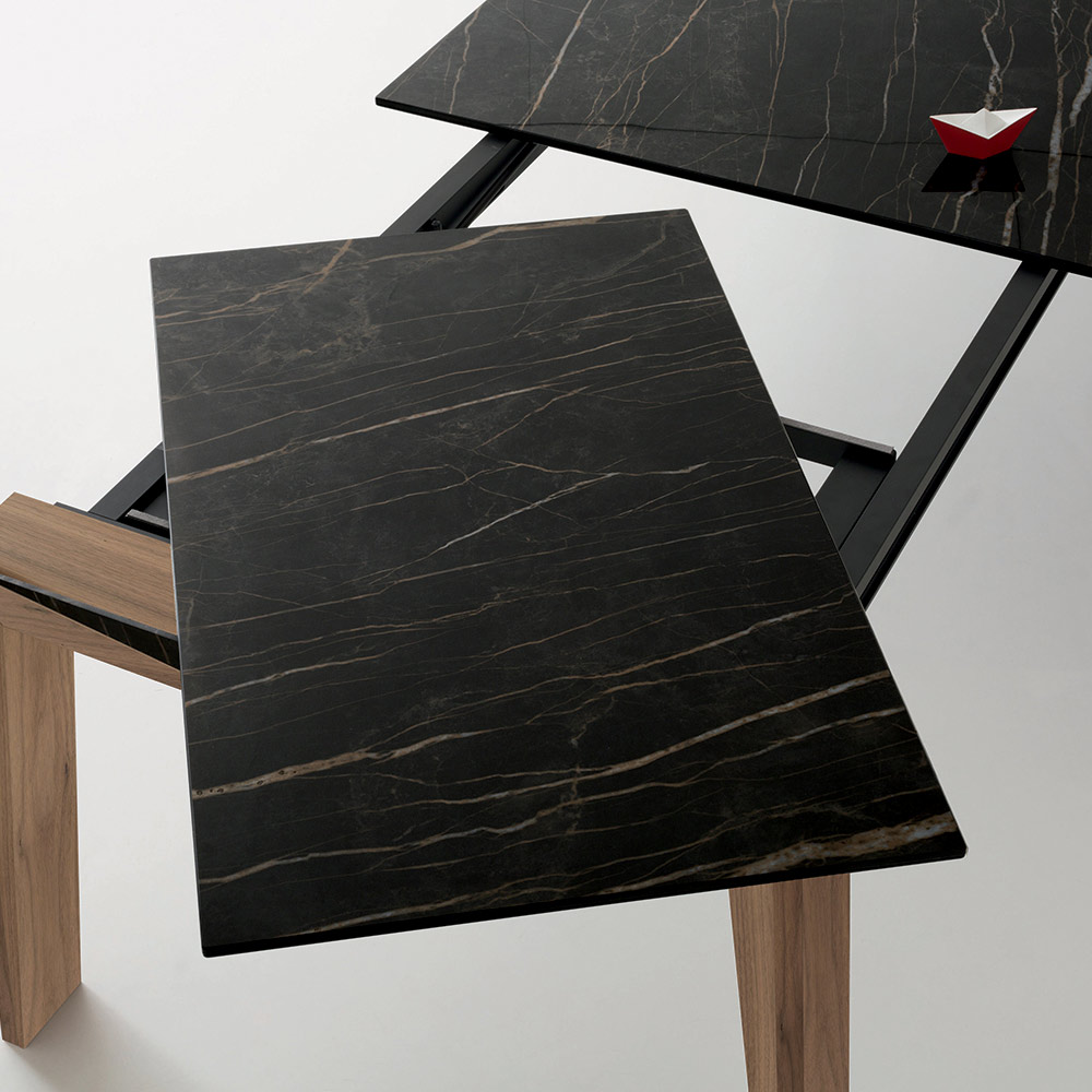 طاولة طعام قابلة للتمديد مصنوعة من الخشب الصلب مع سطح سيراميك لامع، صنعت في إيطاليا.