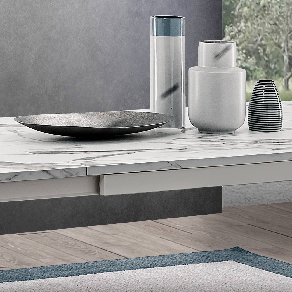 إليكم طاولة طعام تُجسّد إشراقة ونقاء التصميم العصري. بسطحها الميلاميني الرائع بتأثير الكلكاتا ، تُضفي هذه القطعة لمسةً راقية على أي غرفة، إذ تجمع بين متانة المادة وخفة الوزن التي تُضفيها أرجلها المعدنية البيضاء . مظهرها أنيق وبسيط، لكنها غنية بالتفاصيل، مثل الحبيبات الدقيقة والطبيعية التي تمتد برقة على السطح، مُقدمةً مزيجًا مثاليًا من العملية والجماليات الراقية.