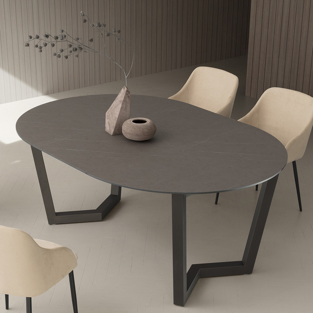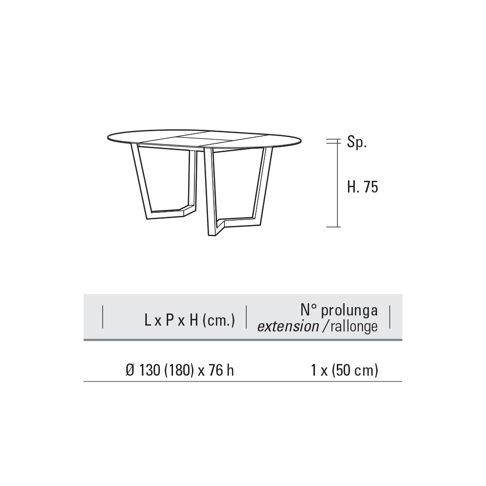 طاولة طعام مستديرة مع سطح قابل للتمديد من مادة HPL الطبقية صنع في إيطاليا.