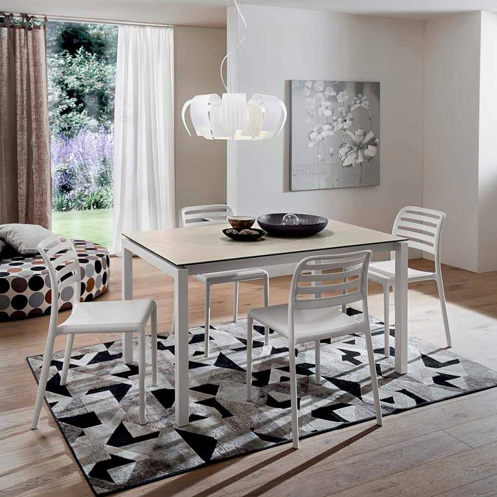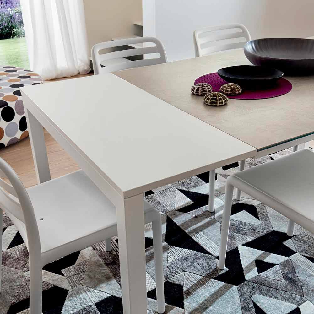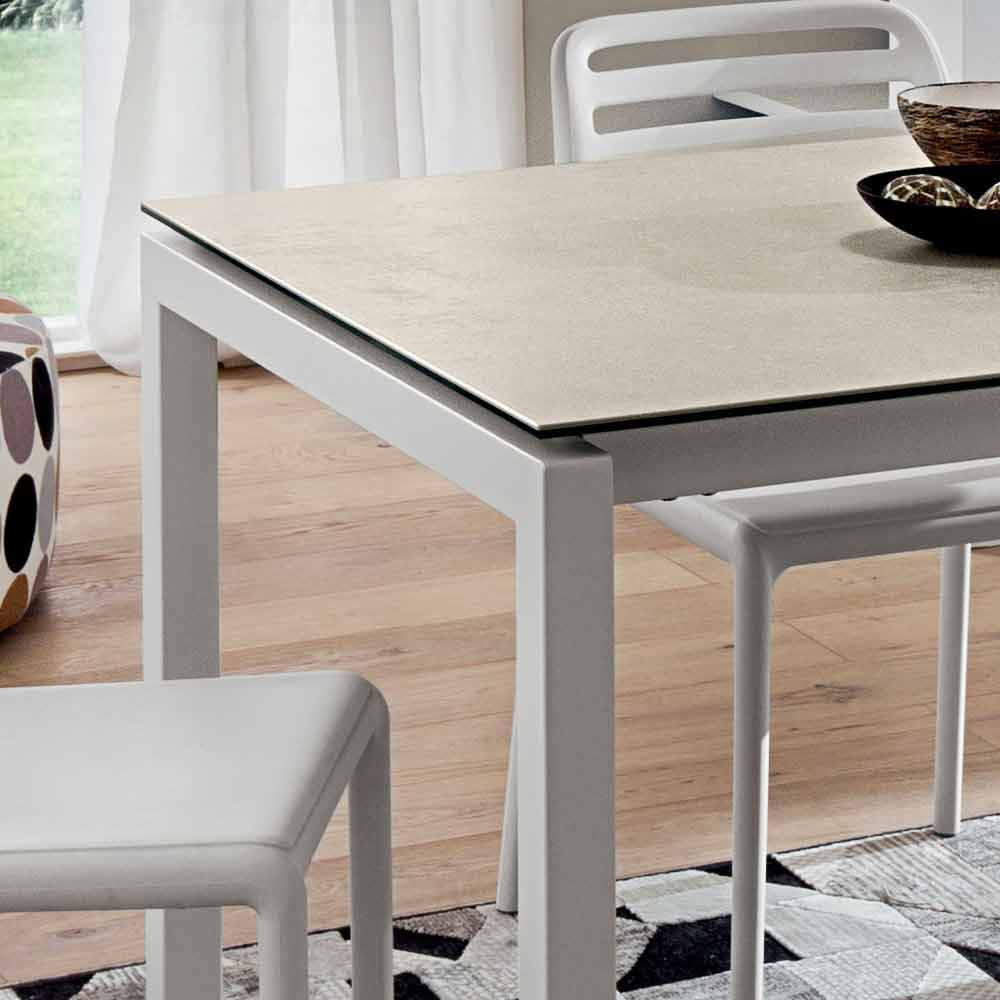 طاولة مطبخ ذات سطح قابل للتمديد من اللامنام والمعدن صنع في إيطاليا.