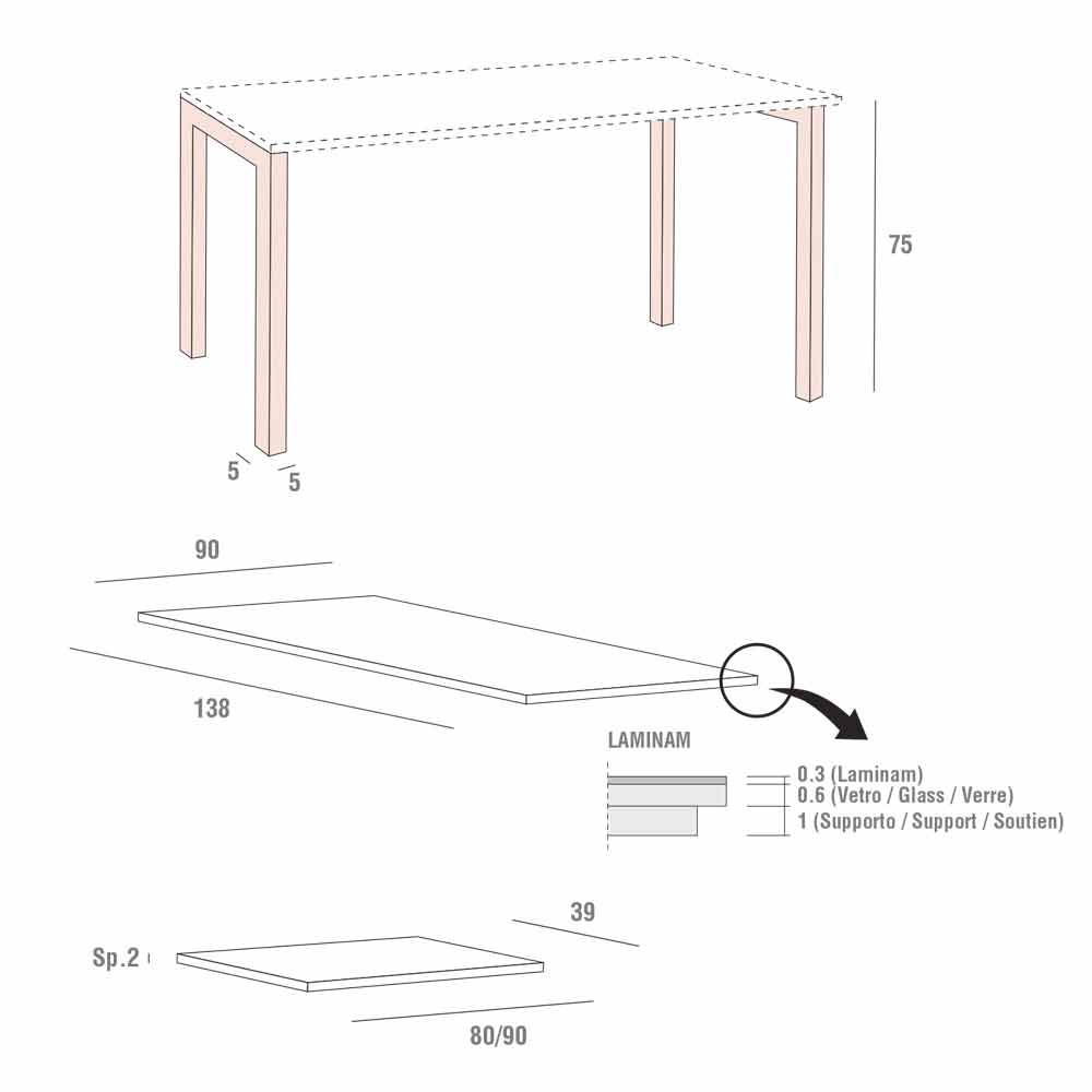 طاولة طعام مصنوعة في إيطاليا، بسطح من الصفيح (سمك 3 مم)، مدعومة بطبقة من الزجاج (سمك 6 مم)، ولوح بسمك 12 مم، وهيكل معدني مطلي بطبقة إيبوكسي بيضاء. حلٌّ أثاثيٌّ يتميز بتصميم أساسي ومتعدد الاستخدامات، وتكمن قوته في سطحه القابل للتمديد الذي يصل إلى 238 سم كحد أقصى بفضل امتدادين من ألواح HPL، كل منهما بطول 39 سم، مما يسمح باستيعاب عدد أكبر من الأشخاص لتناول غداء أو عشاء فاخر مع الأصدقاء، مما يزيد من وظائفهوقيمته .