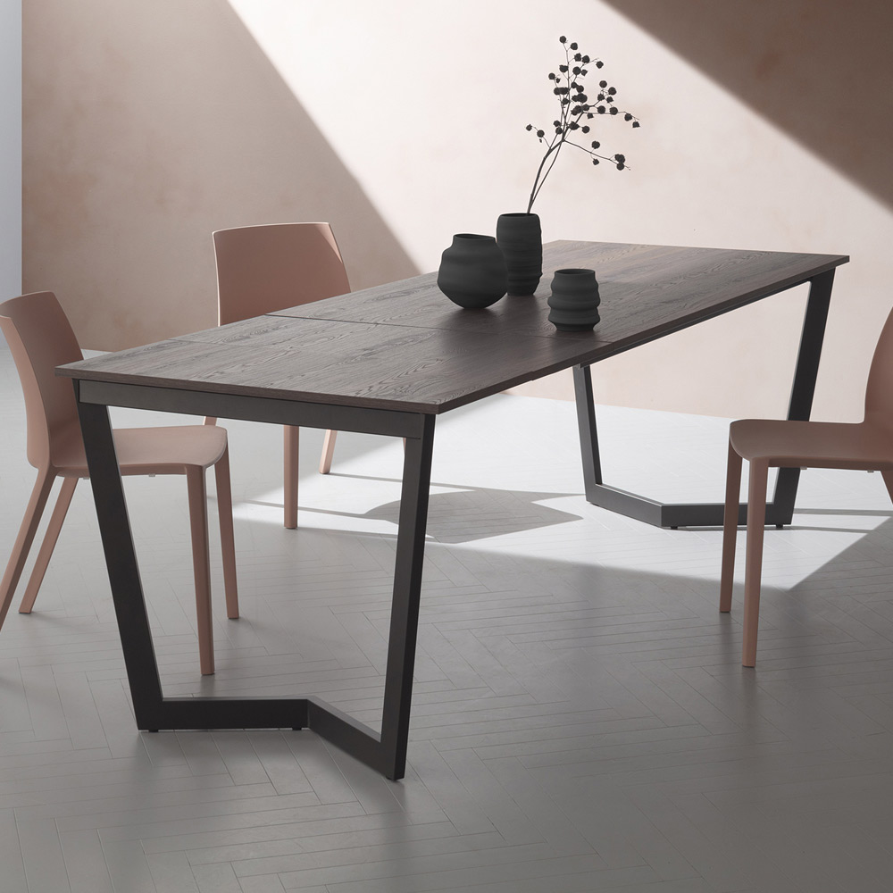 طاولة طعام قابلة للتمديد حتى 238 سم من الخشب الصلب والمعدن المطلي صنع في إيطاليا.