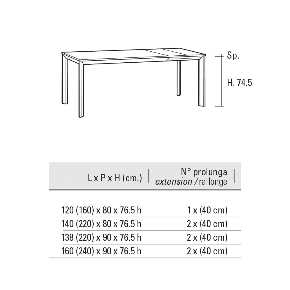 طاولة مطبخ قابلة للتمديد بأرجل من الألومنيوم المؤكسد بلمسة نهائية من الموكا، وسطح من مادة HPL ملونة مع دليل من الألومنيوم على زلاقات من الراتنج الأسيتالمتوفر بتشطيبات مختلفة وأربعة أحجام مختلفة، صنع في إيطاليا .