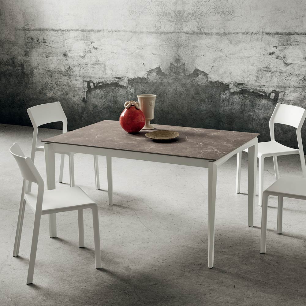 طاولة طعام مصنوعة في إيطاليا بأرجل من خشب الزان المطلي باللون الأبيض غير اللامع، وسطح منHPL مزينة بـ absودليل من الألومنيوم المطلي مع وسادات من راتنج الأسيتال (POM). يُعد هذا الملحق التأثيث مثاليًا لإثراء مساحاتك بأناقة وشخصية مميزة، حيث يتميز بأناقته التي تُبرزها خطوطه البسيطة وأشكاله البسيطة التي تنسجم تمامًا مع التشطيبات الرائعة المتاحة، والتي تُكمل مظهر الطاولة، مُقدمةً حلاً حصريًا وراقيًا . إلى جانب جمالياته الآسرة والراقية، نجد جانبًا عمليًا قويًا يُبرزه سطحه القابل للتمديد بفضل الامتدادات المتوافقة التي تُتيح إمكانية استقبال عدد أكبر من الضيوف مع العودة لشغل مساحة أصغر بعد إغلاقه. اللمسة التي تُميز الطاولة، والتي تجعلها فريدة وتمنحها تصميمًا راقيًا، هي سطح HPL، وهو عبارة عن صفائح عالية الضغط شديدة المقاومة للمواد الكيميائية والتآكل والخدوش. تتجلى خصوصيتها في مجموعة واسعة من التشطيبات المُقدمة، من تأثيرات الحجر إلى تأثيرات الخشب، مرورًا بنسيج الرخام، مما يسمح لنا بتقديم حلول تُلبي مختلف الأذواق بطريقة حصرية وراقية.
