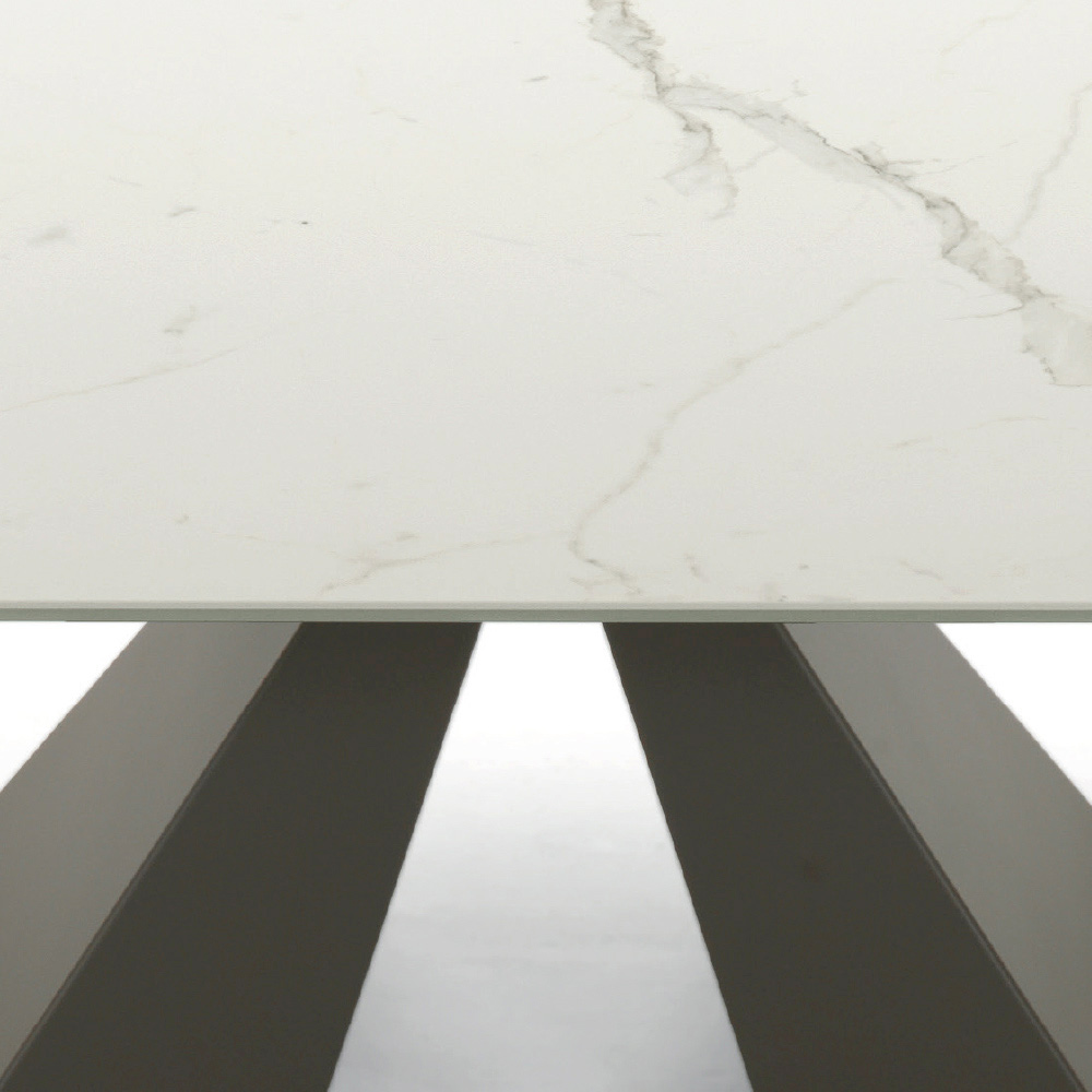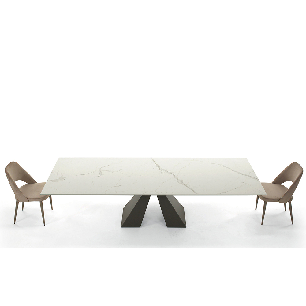 طاولة طعام قابلة للتمديد حتى 278 سم بتصميم عصري من السيراميك والفولاذ مصنوعة في إيطاليا.