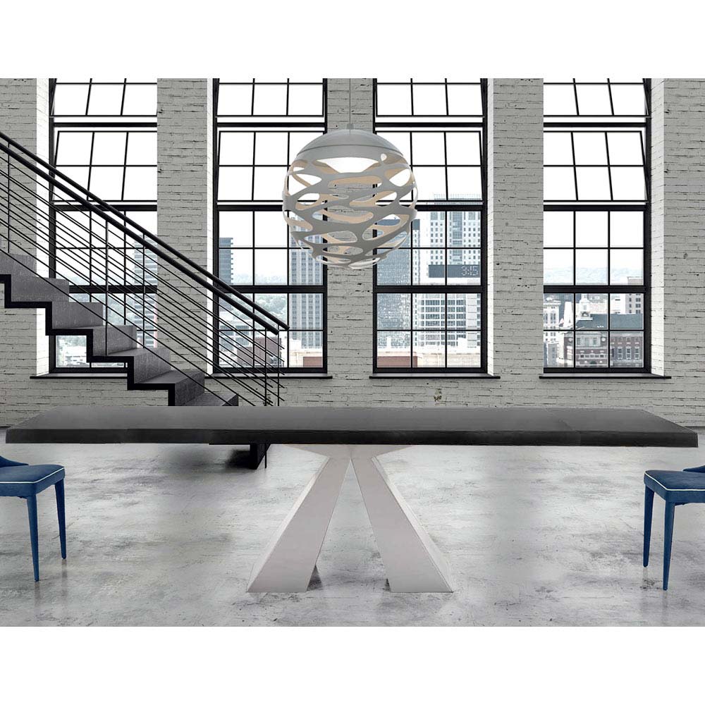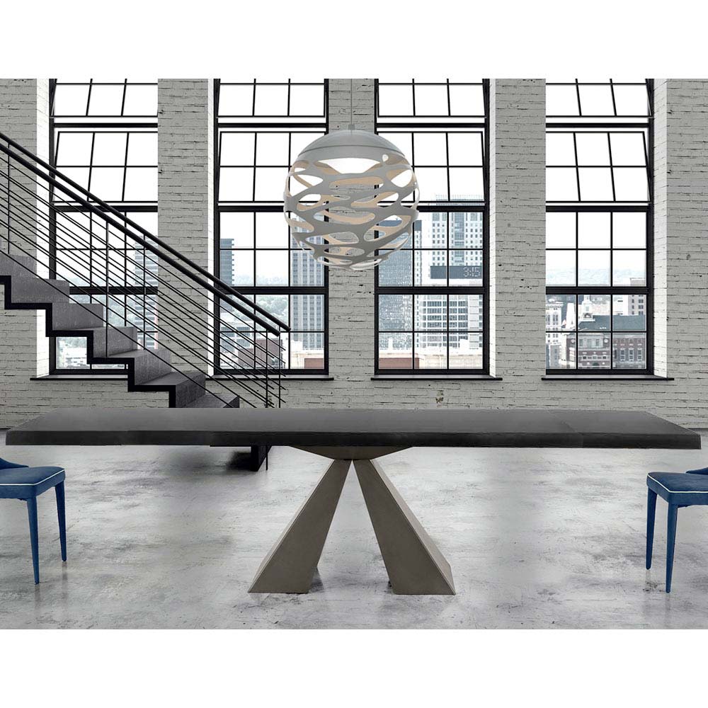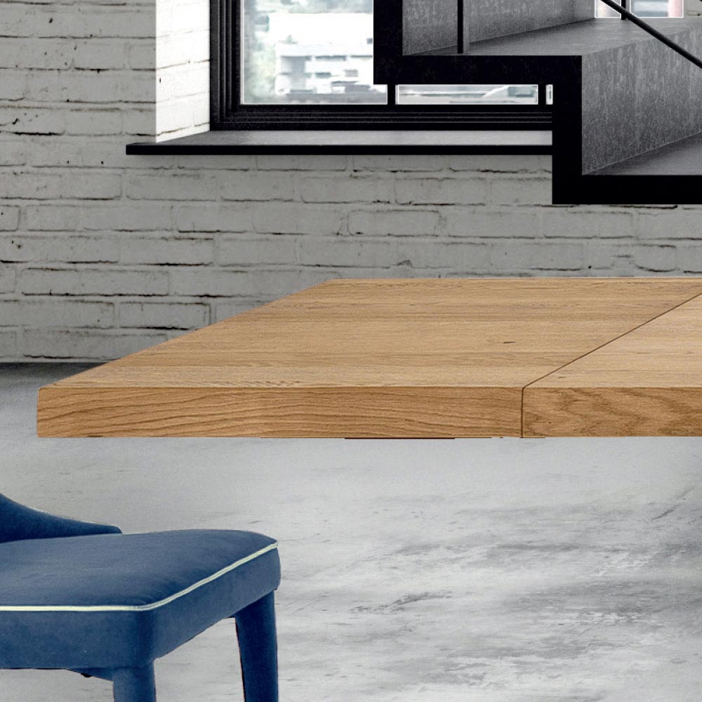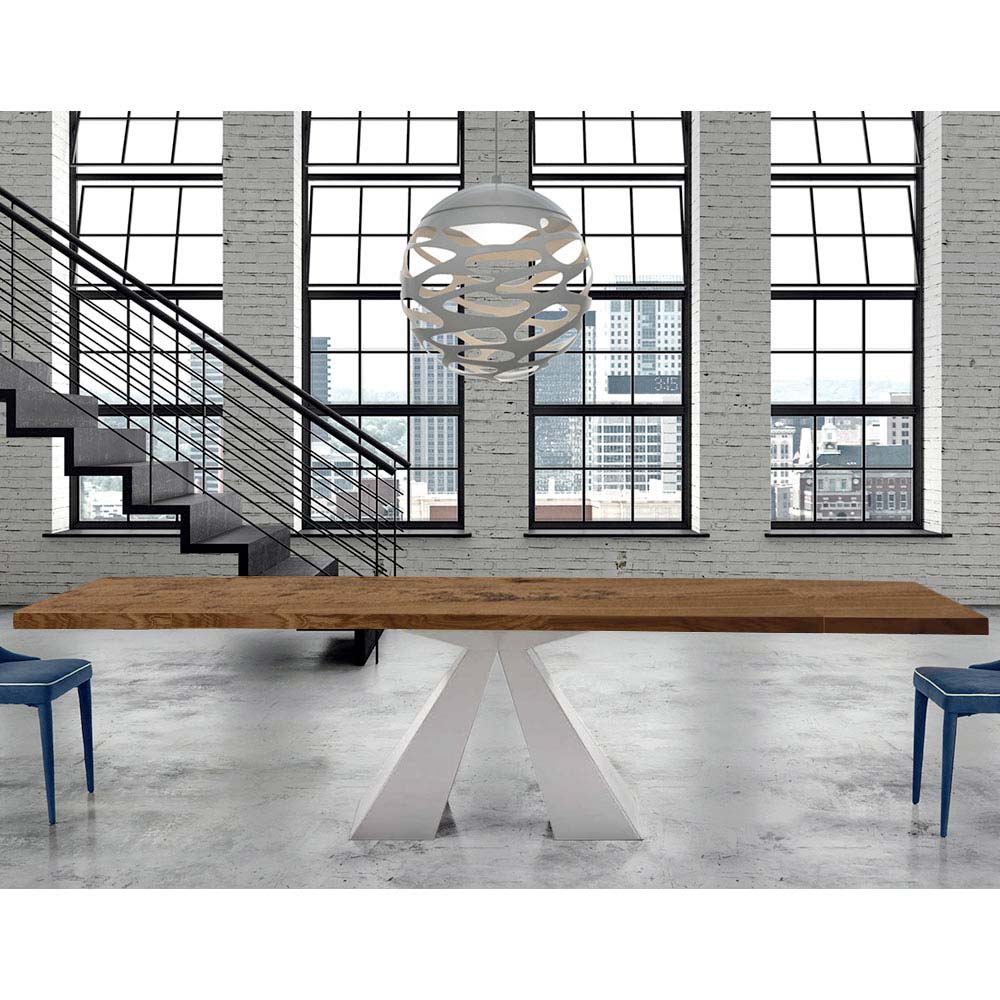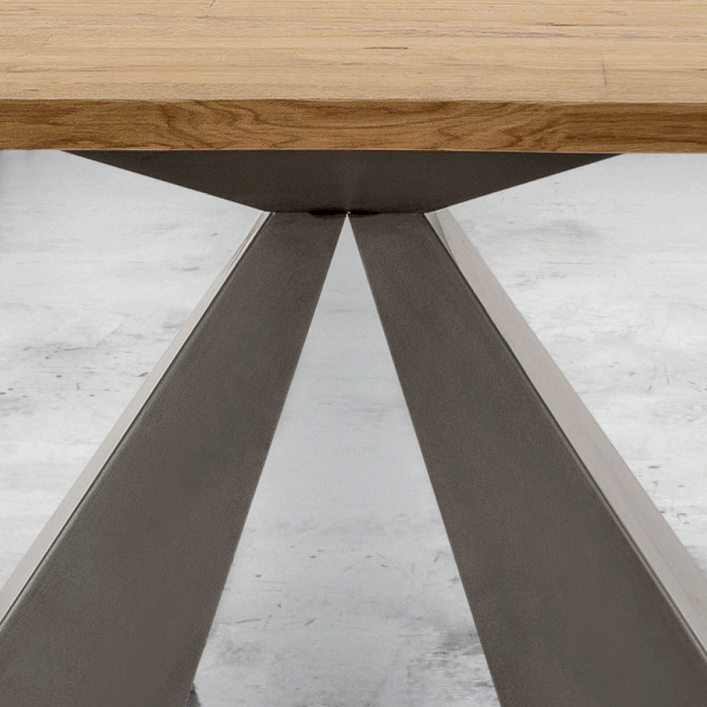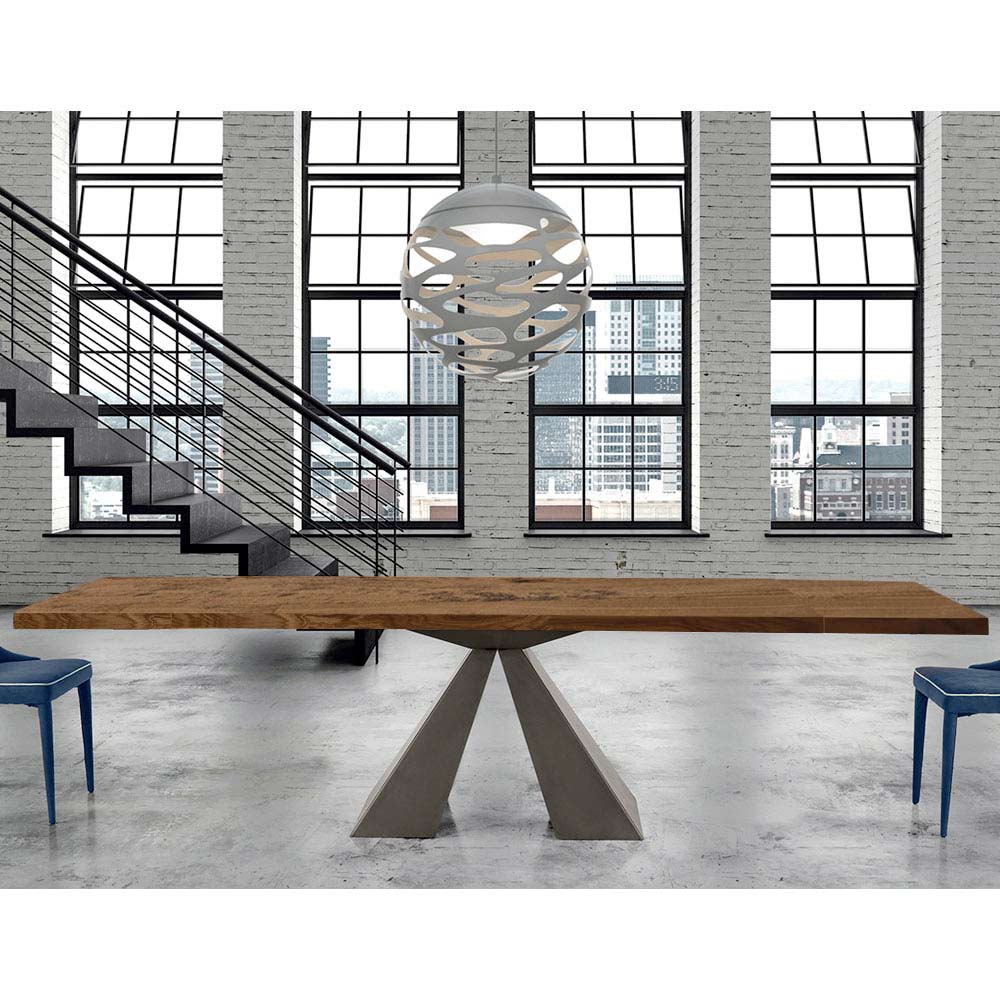 طاولة مطبخ قابلة للتمديد مصنوعة من الخشب المقشر وقاعدة فولاذية مصنوعة يدويًا في إيطاليا.