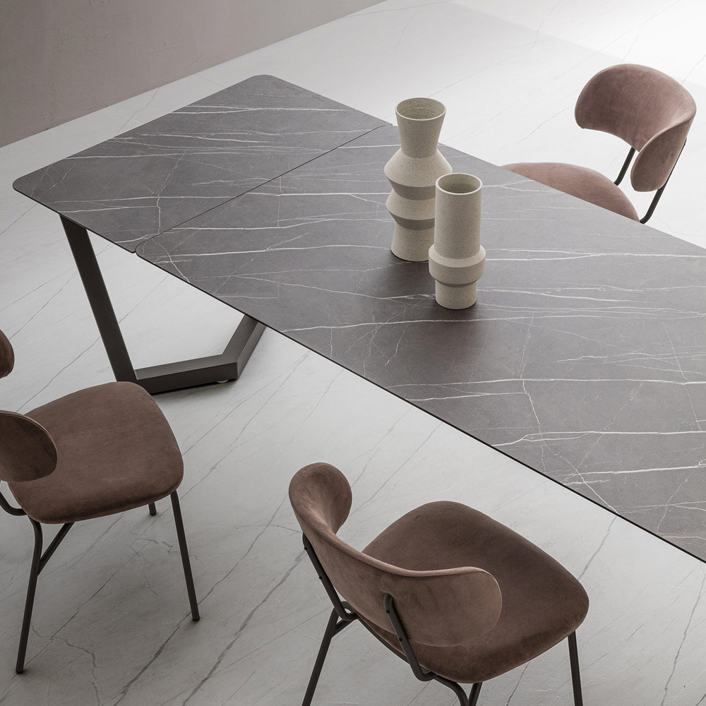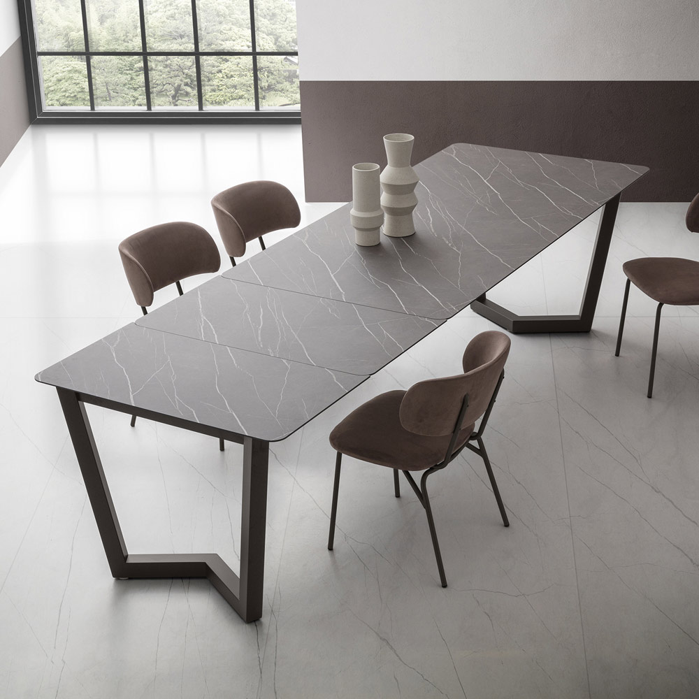 طاولة مطبخ قابلة للتمديد مع قاعدة معدنية مطلية بمساحيق إيبوكسي، لمسة نهائية بلون الموكا، سطح من HPL متعدد الطبقات متوفر بلمسات نهائية مختلفة ودليل للتمديداتمصنوعة من الألومنيومالمطلي مع زلاجات عملية، صنع في إيطاليا .