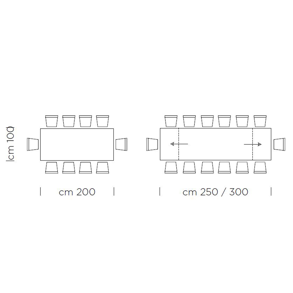 طاولة طعام ذات سطح قابل للتمديد من الخشب المقشر وقاعدة من الفولاذ المطلي ومزينة بزخارف من الألومنيوم تتناسب مع القاعدة (متوفرة أيضًا عند الطلب بنفس لون الأرجل). حلٌّ أثاثيٌّ بجمالياتٍ مبهرة ، مصنوعٌ في إيطاليا باستخدام مواد خام عالية الجودة، مُنتقاة بعنايةٍ لتقديم منتجٍ متينٍ ومتينٍ ومقاومٍ ، مع جانبٍ عمليٍّ ممتازٍ دون إغفال الجانب الجمالي الأساسي، مما يجعل هذه الطاولة محورًا أساسيًا في أي غرفة طعام أو مطبخ عصري. سطحها القابل للتمديد حتى 300 سم يزيد من وظائفها، مما يسمح لها باستيعاب ما يصل إلى 14 شخصًا ، مما يجعلها فكرةً مثاليةً لمن يُحبّون تنظيم وجبات الغداء والعشاء مع الأصدقاء ويرغبون في أسلوبٍ عصريٍّ يُضفي تناغمًا رائعًا مع العناصر المحيطة.