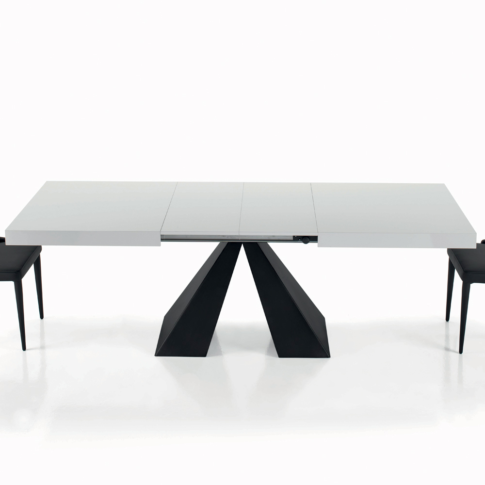طاولة معيشة قابلة للتمديد مع فتحة مركزية متزامنة (امتدادات داخلية)، سطح مغلف باللون الأبيض غير اللامع، حافة قابلة للطي ، قاعدة فولاذية مطلية باللون الأسود وأقدام قابلة للتعديل. التزم الحرفيون الإيطاليون الذين صنعوا هذا المنتج باختيار أجود الخاماتوالدقة في كل تفصيلة ، ليضمنوا للعميل طاولةً جميلةً وعمليةً ومناسبةً لمختلف المناسبات . هذا العنصر مثاليٌّ لتزيين أي بيئة يومية أو خاصة، مما يمنح الغرفة لمسةً فريدةً وأنيقةً.