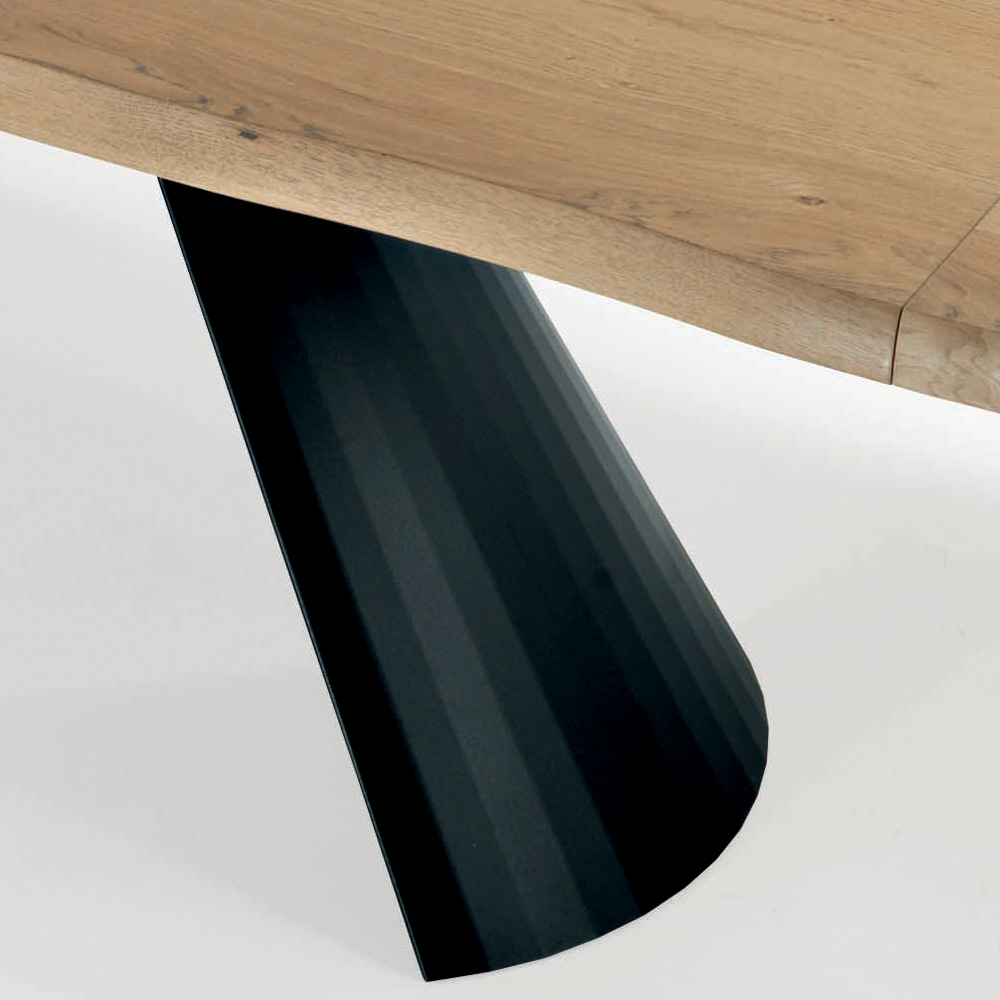طاولة معيشة قابلة للتمديد مع حوامل قابلة للاستخراج، ملحقات منفصلة للإدخال ، سطح من الخشب المقشر مع لمسة نهائية من خشب البلوط الطبيعي ، حافة غير منتظمة منزوعة اللحاء ، قاعدة من الفولاذ المطلي باللون الأسود وأقدام قابلة للتعديل. اختيار أجود الخاماتوالعناية بأدق التفاصيل يُنتج منتجًا إيطاليًا عالي الجودة . بفضل شكل قاعدته وتشطيباته المُتاحة، تُصبح هذه الطاولة الخيار الأمثل لأي غرفة معيشة يومية ، وهي الخيار الأمثل لمن يرغب بإضفاء لمسة أنيقة وفاخرة وفريدة على غرفته.