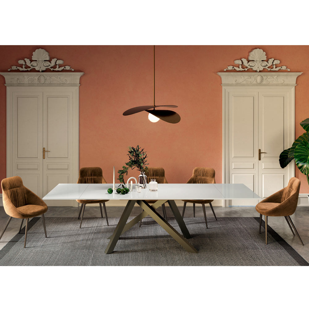 طاولة معيشة قابلة للتمديد مع ملحقات مدمجة، سطح زجاجي أبيض غير لامع، حافة مستقيمة قابلة للتمديد ، قاعدة فولاذية مطلية بالنحاس العتيق مع أقدام قابلة للتعديل. يمتزج الأسلوب العصري والأناقة في هذا المنتج الذي يُكمل كل بيئة منزلية وتجارية ويجعلها فريدة. بفضل التشطيبات والمواد المختارة، نضمن جودة "صنع في إيطاليا" بالكامل، وهو منتج ليس جميلاً فحسب، بل عملياً وعملياً أيضاً.
