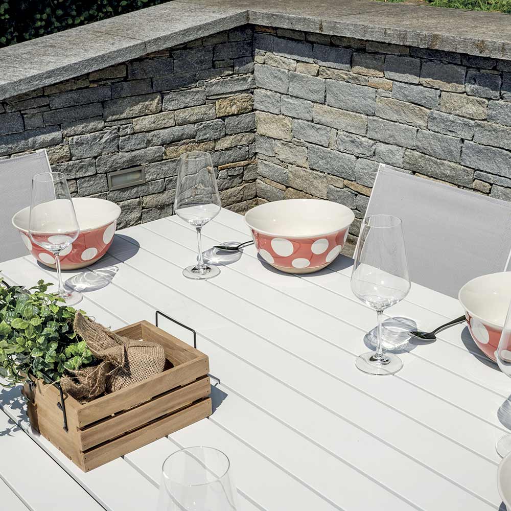 تلتقي الأناقة والقوة والعملية في هذه الطاولة البيضاء المصنوعة من الألومنيوم ذات السطح الشبكي ، قطعة أثاث تجمع بين العملية والأناقة العصرية. تشطيبها الأبيض وخطوطها الأنيقة تجعلها مناسبة لأي مساحة خارجية، من الحديقة إلى الشرفة، مما يضفي عليها لمسة من الرقي الخالد.