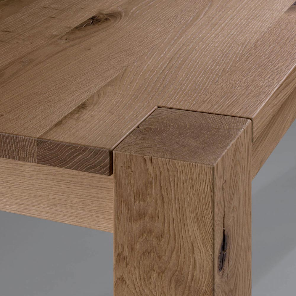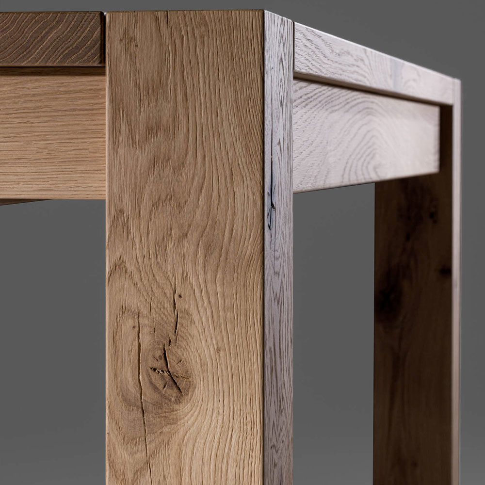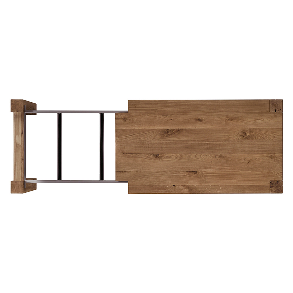 طاولة قابلة للتمديد ، سطحها منخشب البلوط الطبيعي المقسم، وأرجلها من الخشب المصفح، ١٢×١٢ سم. تشمل ملحقات إضافية . الأبعاد: ارتفاع ٧٧ سم، سمك ٣ سم. نظام فتح مزود بدليل معدنيتلسكوبي . تتميز المجموعة ذات الطراز الحديث بقطع فريدة ومصممة خصيصًا. رمزٌ لإبداع مَن يُتقنون حرفتهم ويُطورونها بكامل إرادتهم وعقلهم وقلبهم. صُممت المفروشات كوسيلةٍ لتحقيق مساحةٍ شخصيةٍ مثالية.