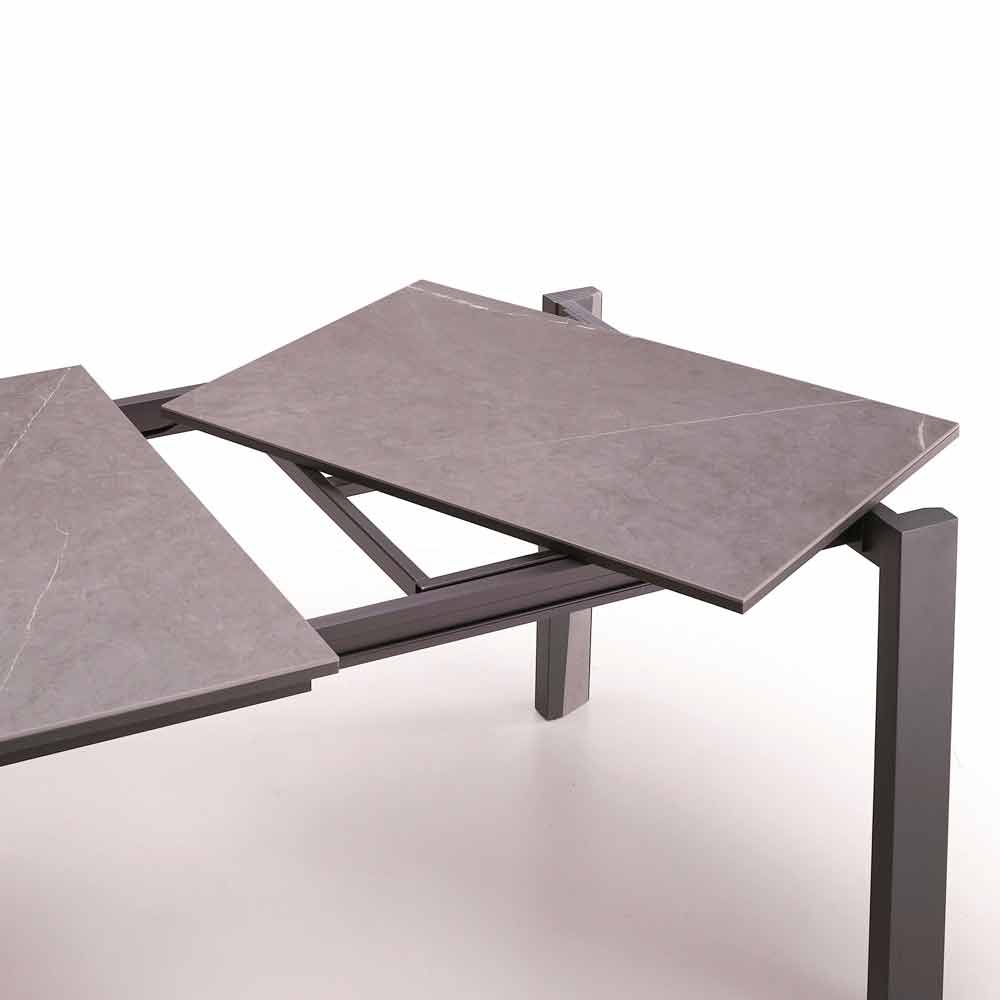 طاولة حديثة قابلة للتمديد مصنوعة من الخزف الحجري وخشب الزان من إنتاج شركة دوتشيو الإيطالية Duccio هي طاولة بتصميم عصري للغاية تضمن أقصى قدر من الوظائف بفضل امتدادها الذي يسمح لك بزيادة طول الجزء العلوي بسهولة، مع الحفاظ على ثبات وصلابة ممتازة. مثالية لتزيين منطقة المعيشة والعقد الخاصة بك بأناقة وعاطفة.