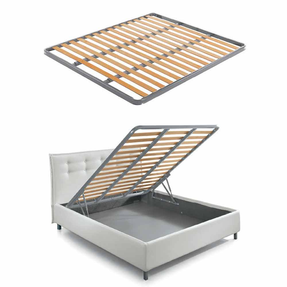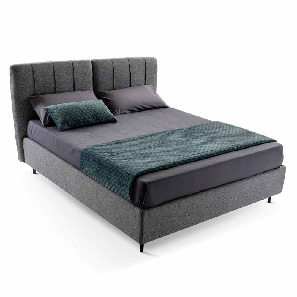 سرير مزدوج عصري فاخر مع صندوق تخزين من القماش وأقدام معدنية، مصنوع يدويًا في إيطاليا.